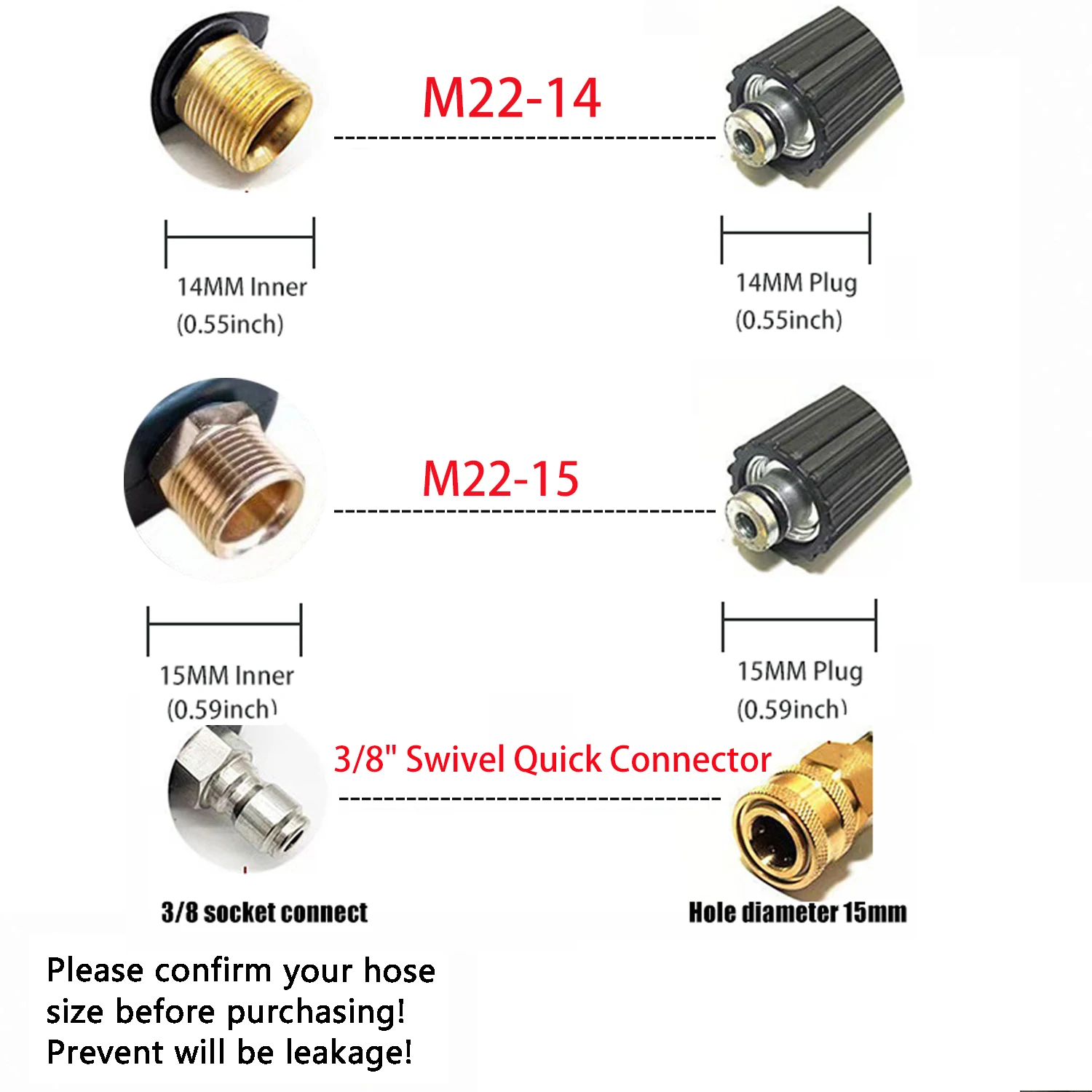 5. Connector: M22 metric thread (22mm outer diameter, 14mm inner diameter), 1/4 inch quick release adapter.