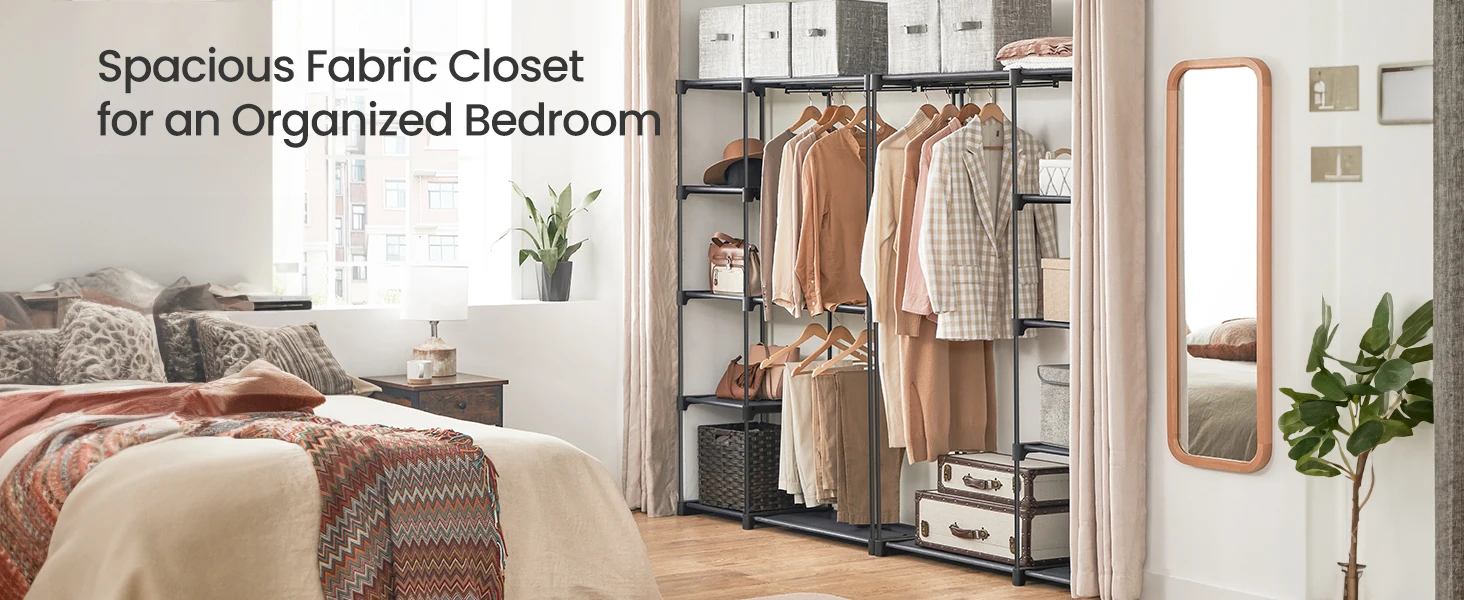 [Versatile] This portable closet boasts a simple structure with a neutral color, seamlessly blending into any room of your home, whether it's the bedroom, living room, or entryway