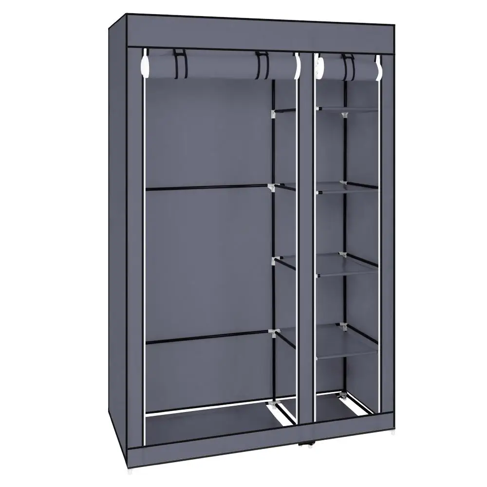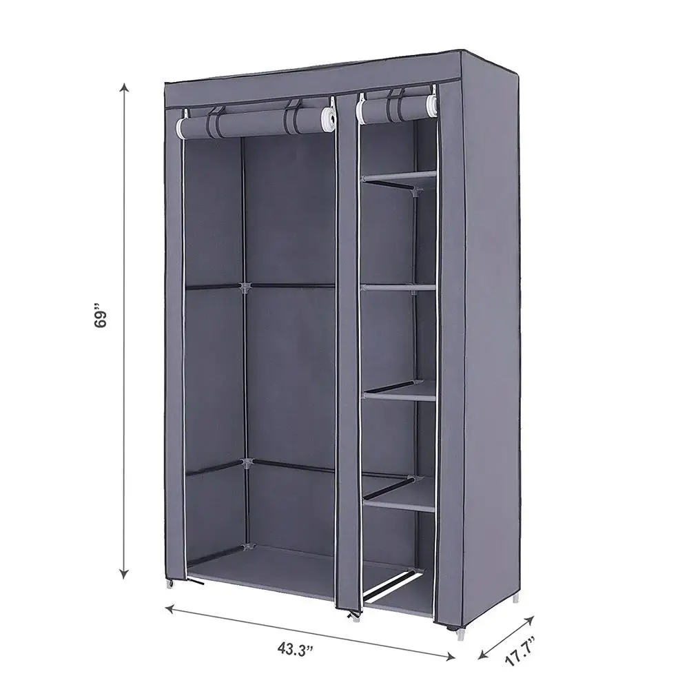 67 Portable Gray Clothes Closet Wardrobe with Non-Woven Fabric & Hanging Rod - Easy Assembly Furniture