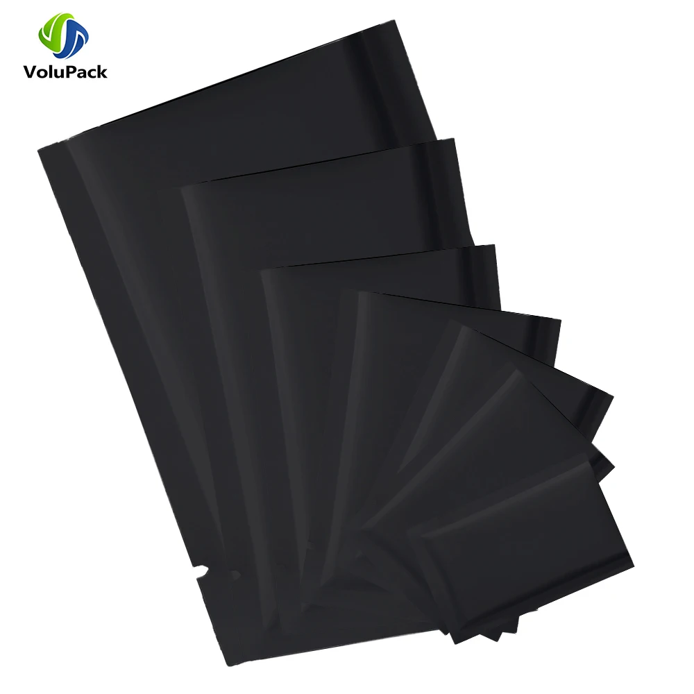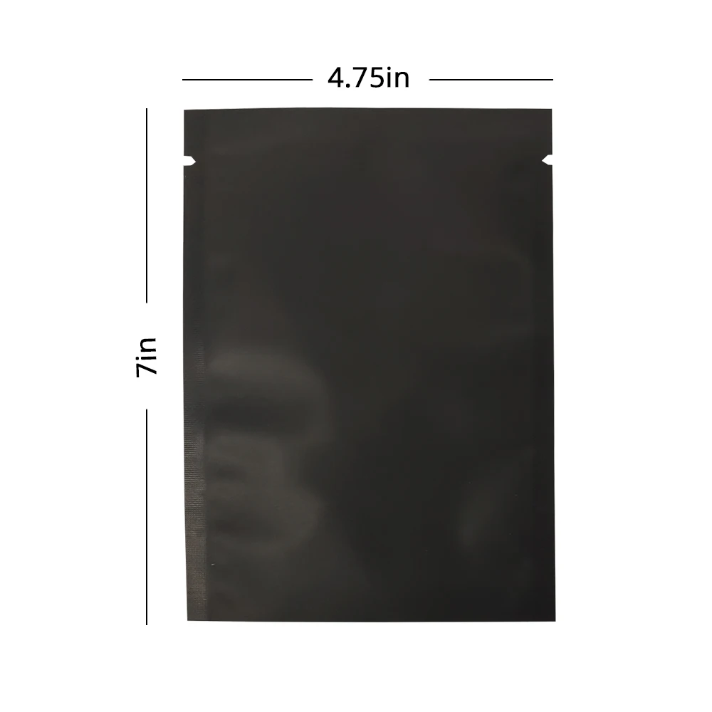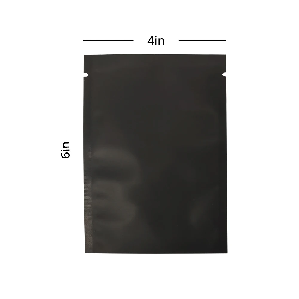Multi Size Smell Proof Storage Bags Matte Black Open Top Tear Notch Pouches Vacuum Heat Sealing Aluminum Foil Mylar Package Bags