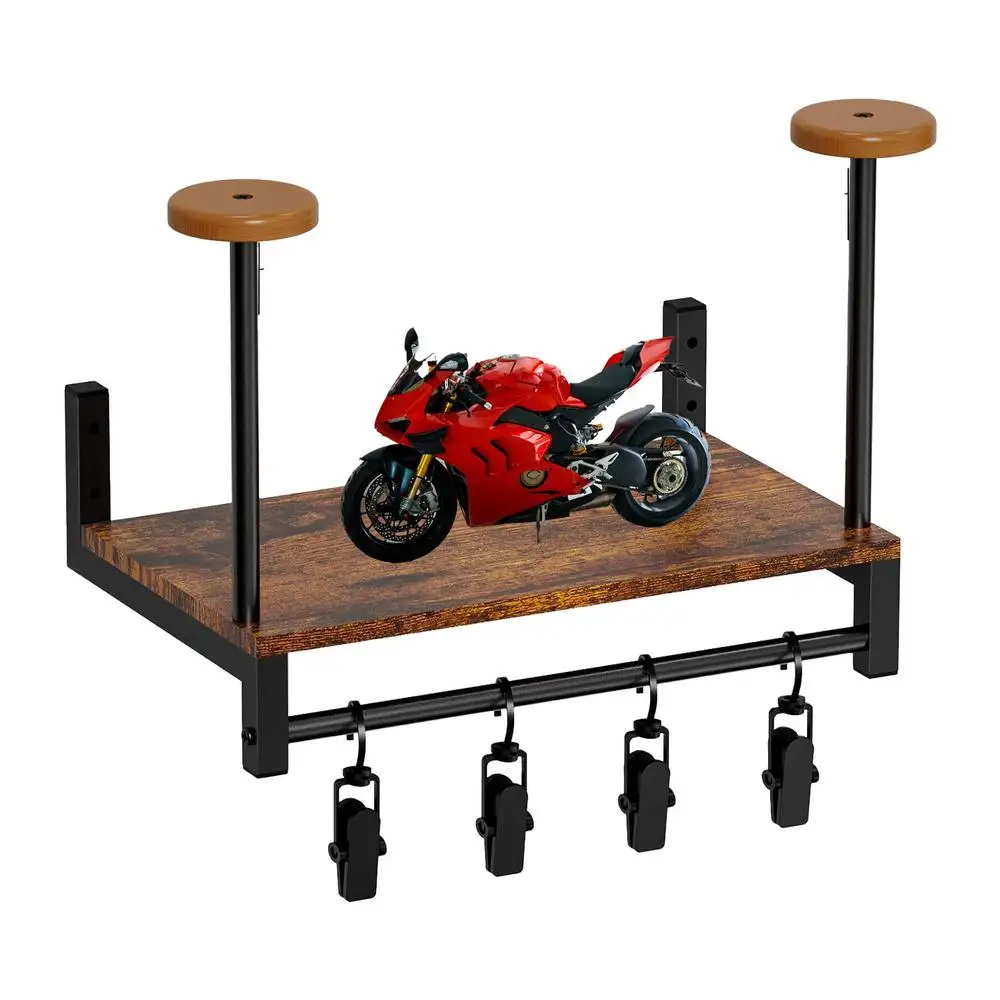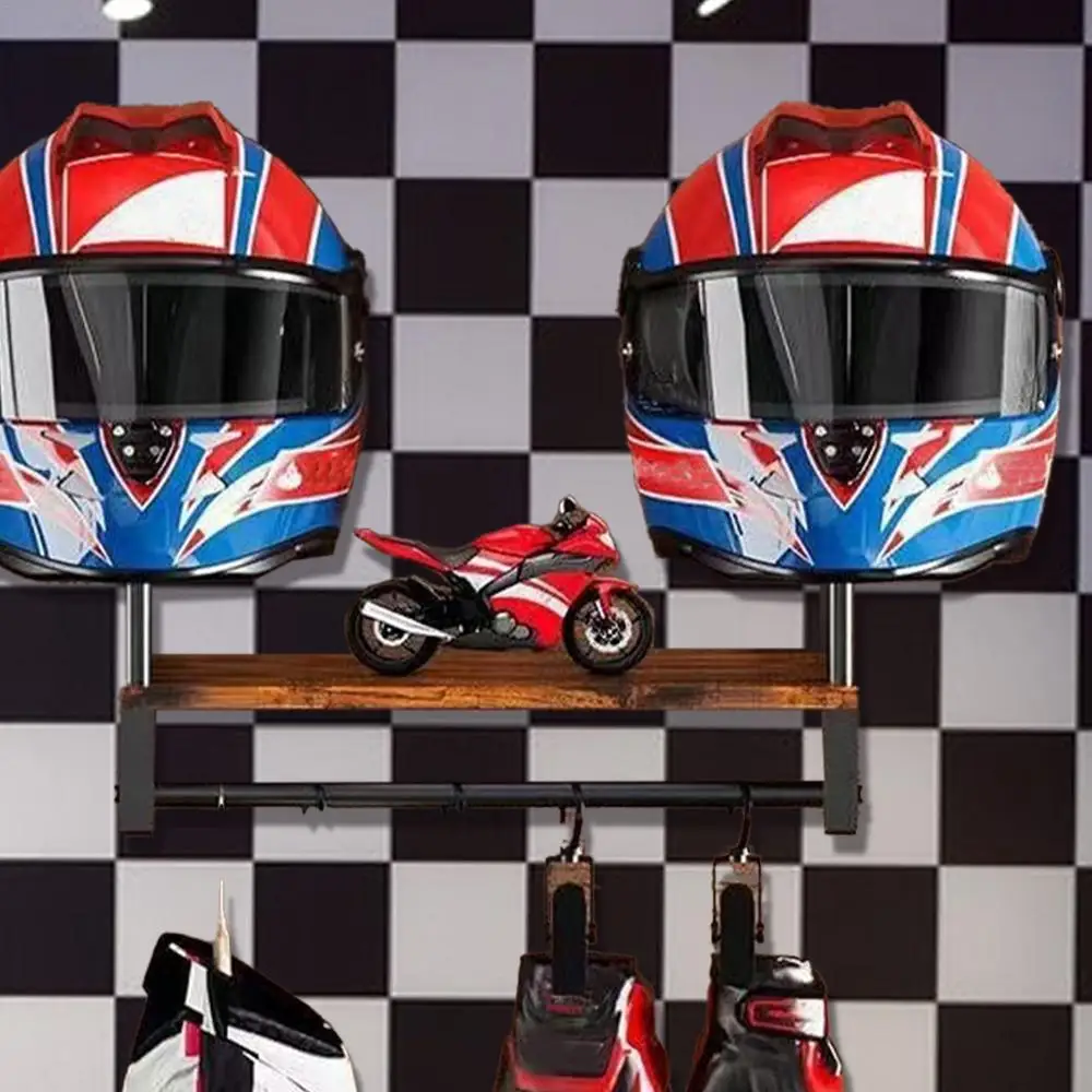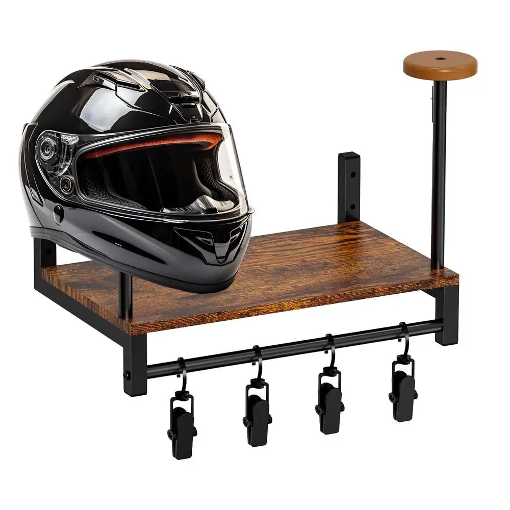 Motorcycle Hat Holder Wall Hanger Hat Rack Safety Hat Hanger Display Stand Hat Organizer With 4 Clips Wooden Storage Rack