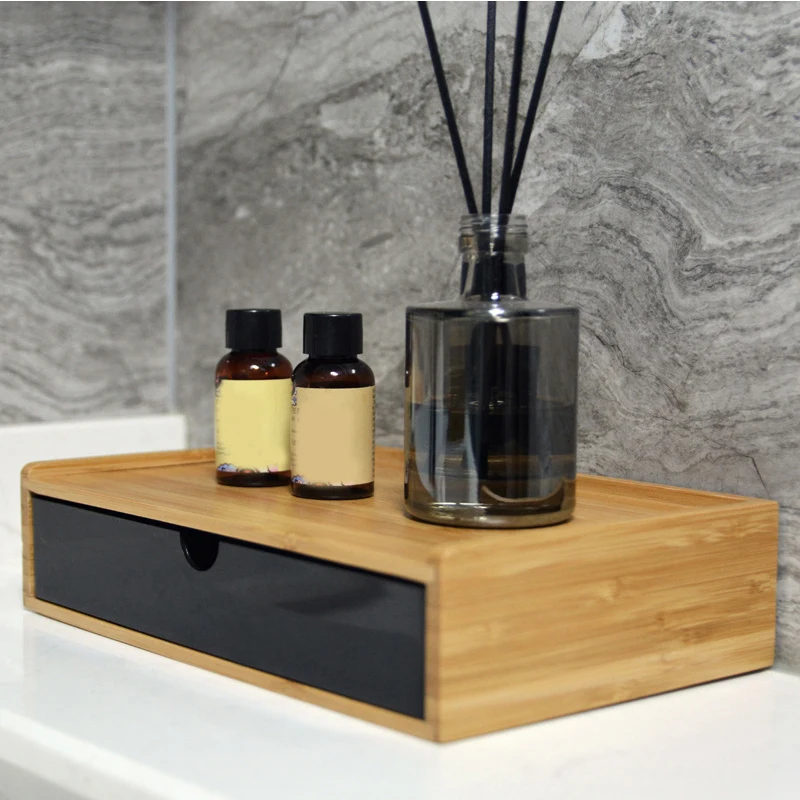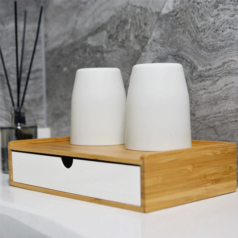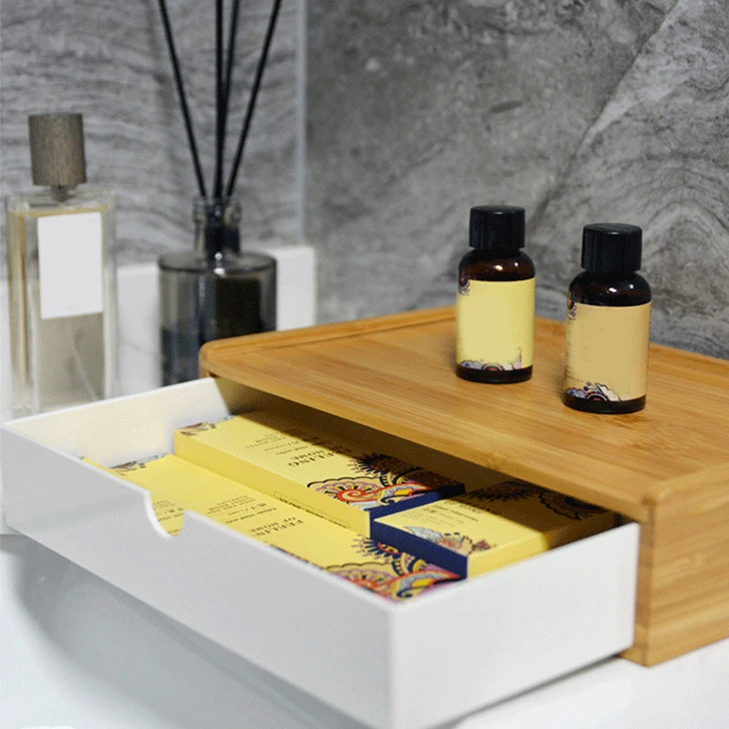 2024 New Bamboo Hotel Toiletries Storage Organizer Pull-out Hotel Room Tooth Set Storage Box #0103