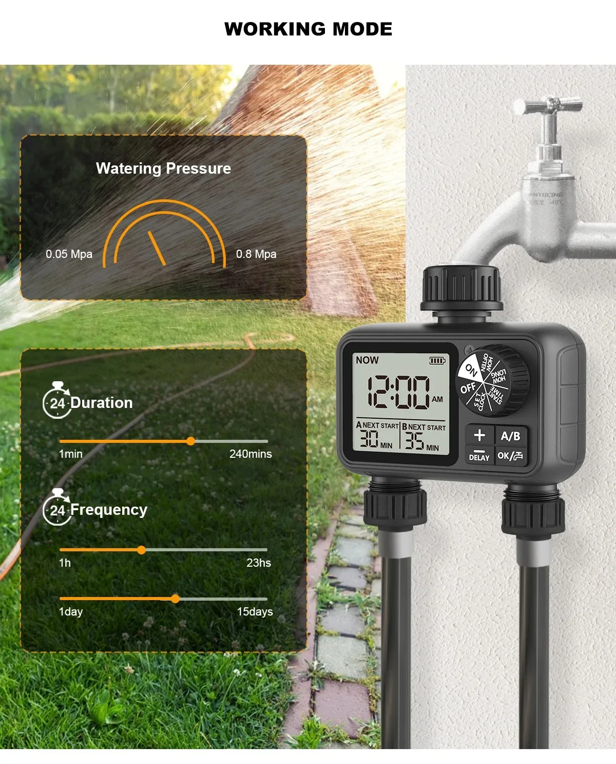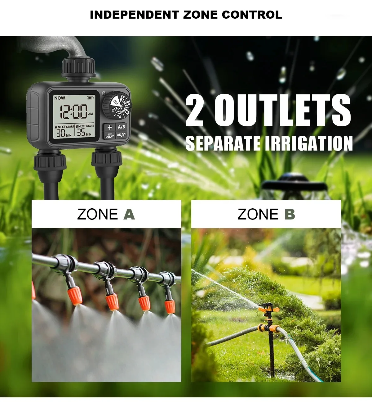Newest 2-outlet Digital Water Timer Independent Programming Control Adjustable Sprinker Easy Installation Garden Lawn Irrigate