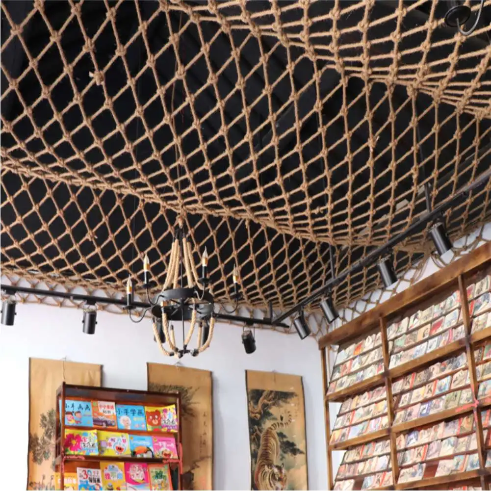 Heavy Jute Hemp Rope Net Garden Protective Fencing Stair Balcony Railing Children Safety Net Decorative Net Hammock Climbing Net