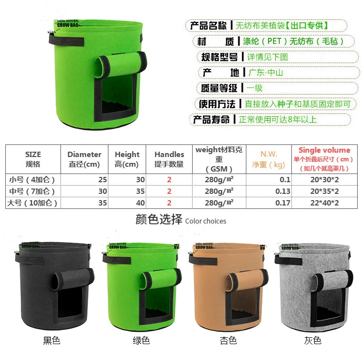 Made from non-woven fabric, the grow bag is durable and allows for proper drainage and air circulation.