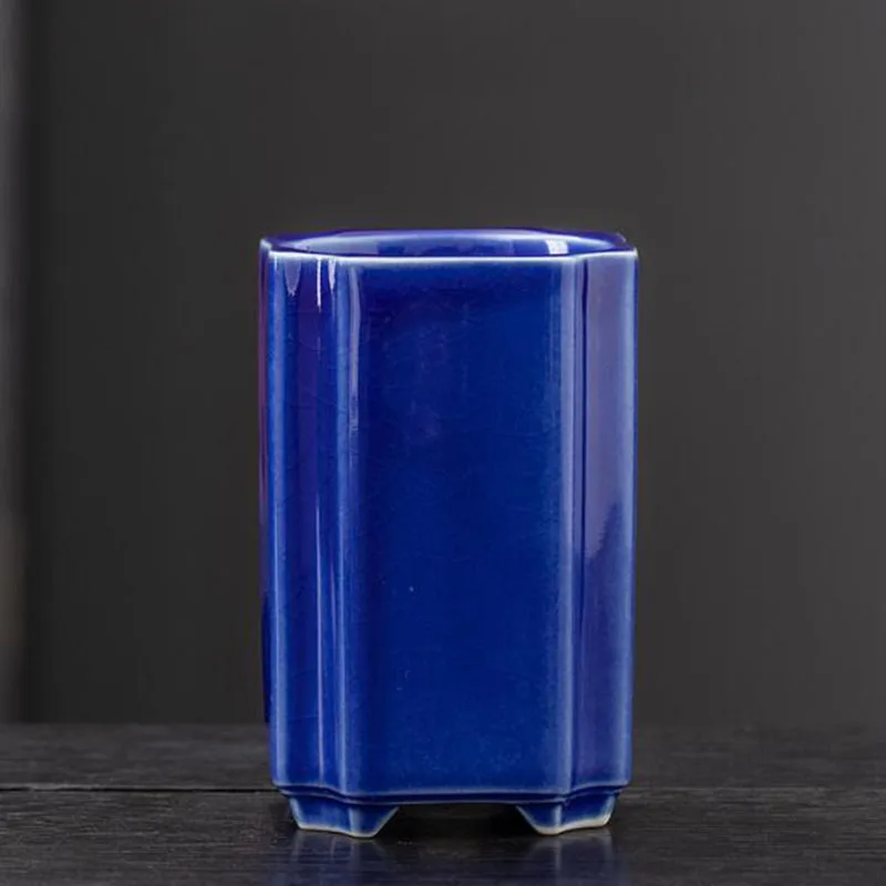 Porcelain Square Celadon Glazed Orchid Flowerpot Bonsai Vase Plant Pot Crafts Art Ornaments Home Garden Decor
