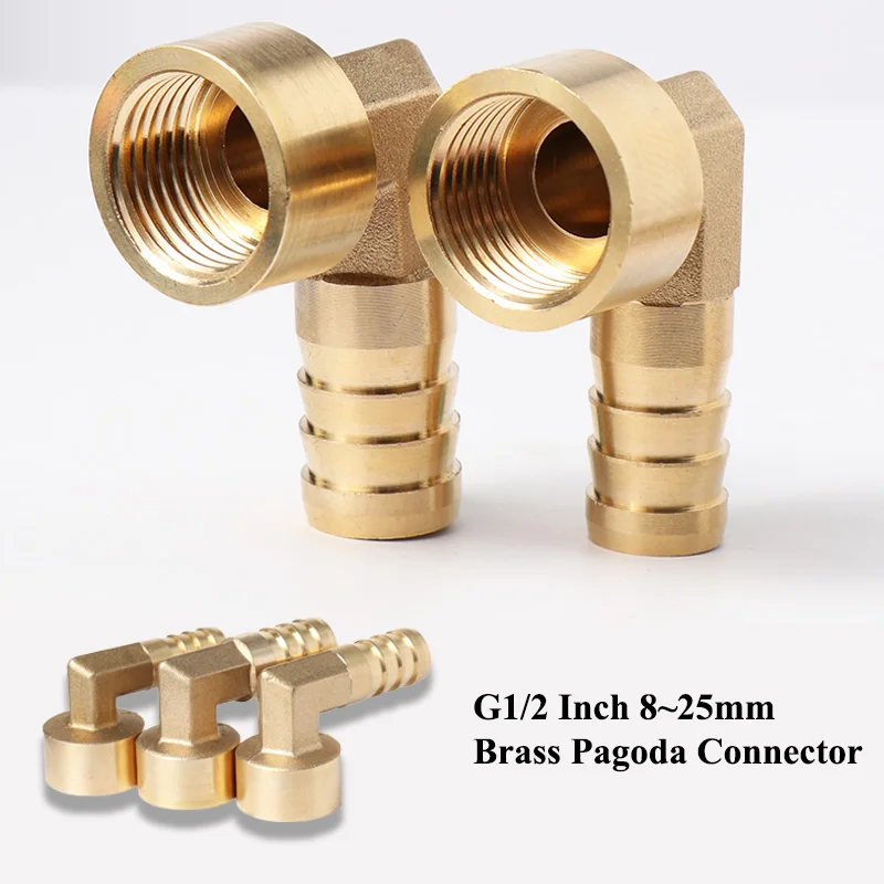 1~200pcs G1/2 Inch 8~25mm Brass Joint Copper Female Pagoda Connector Garden Irrigation Aquarium Pump Elbow Metal Barb Hose Fittings