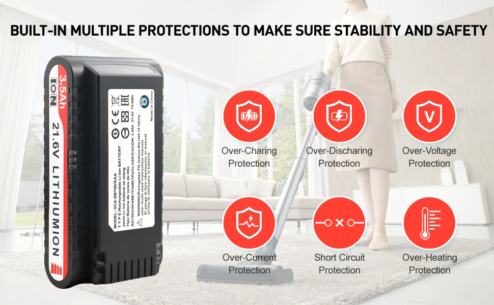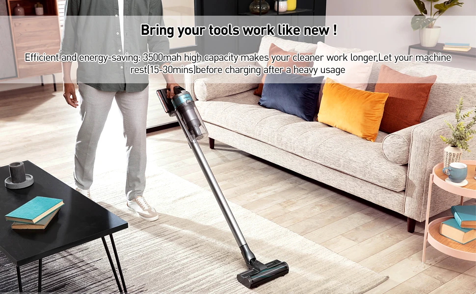 100% actual capacity and latest battery. The new battery must be fully charged and fully discharged 2-3 times before it can be fully adjusted, 3500mah high capacity makes your cleaner work longer,Let your machine rest(15-30mins)before charging after a heavy usage(REPLACEMENT BATTERY)