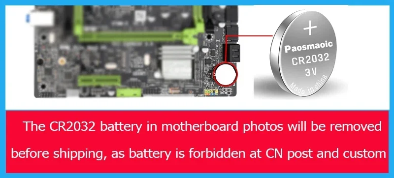 5:The battery in motherboard photos will be removed before shipping, as battery is forbidden at CN post and custom.