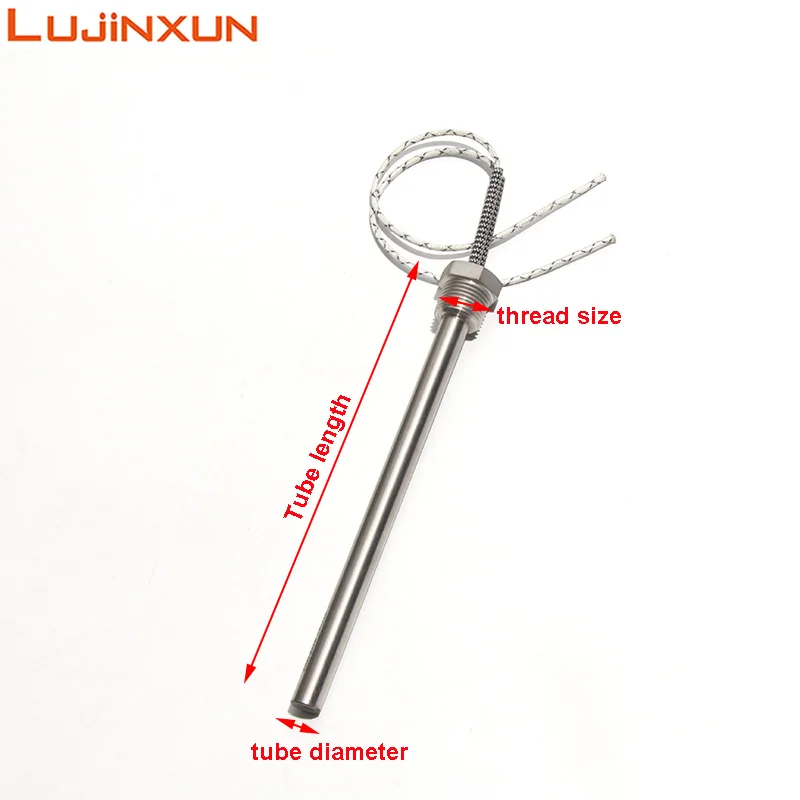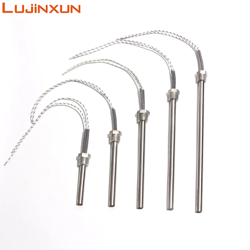 LUJINXUN 12V 24V DN8/12.8mm BSP Mold Threaded Single Head Heating Tube 200-600W 8x100-300mm Cartridge Heater Stainess Steel 1pc