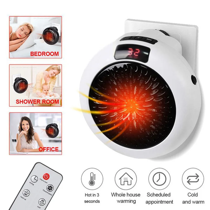Electric Heater 900W Portable Plug In Wall Heater Room Heating Stove Remote Warmer Machine Home Office Warming Machine