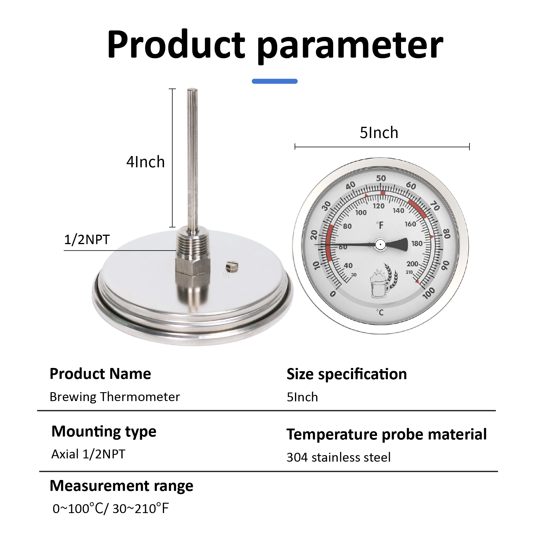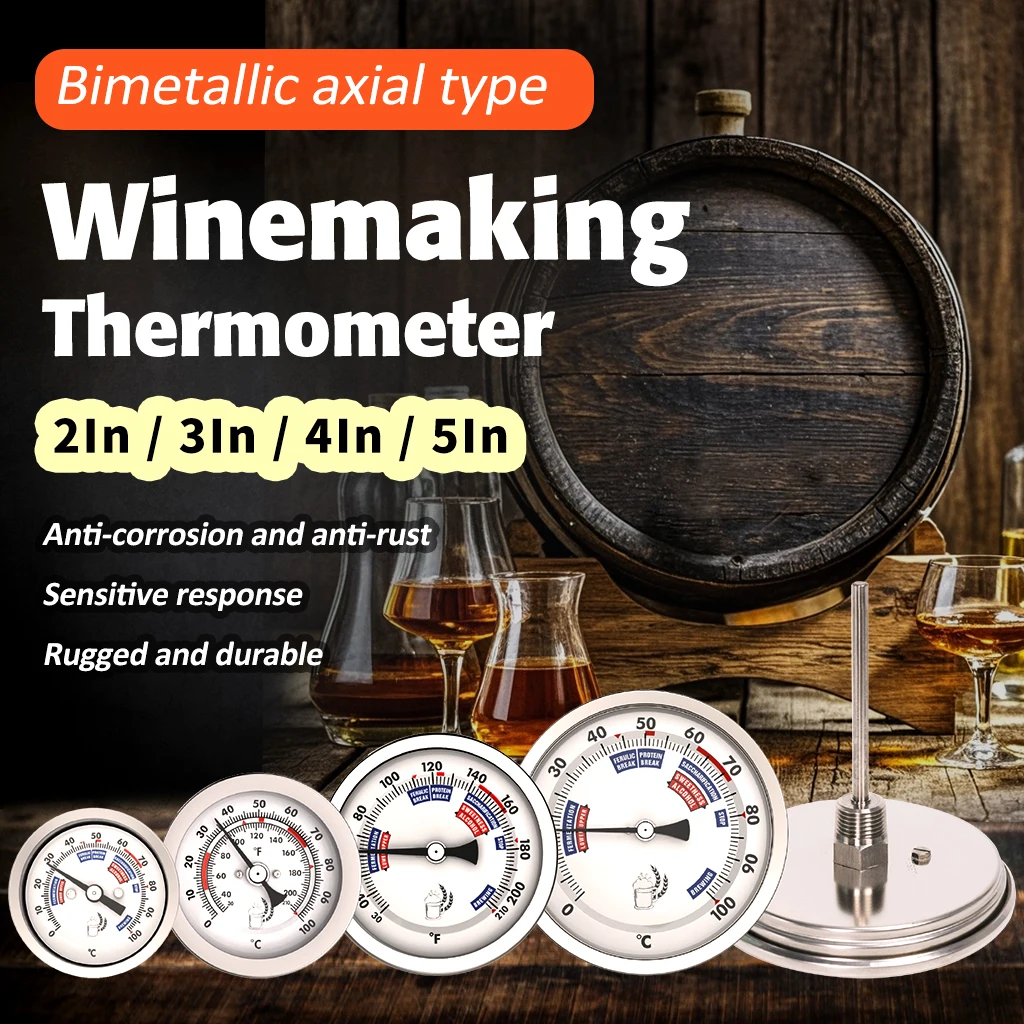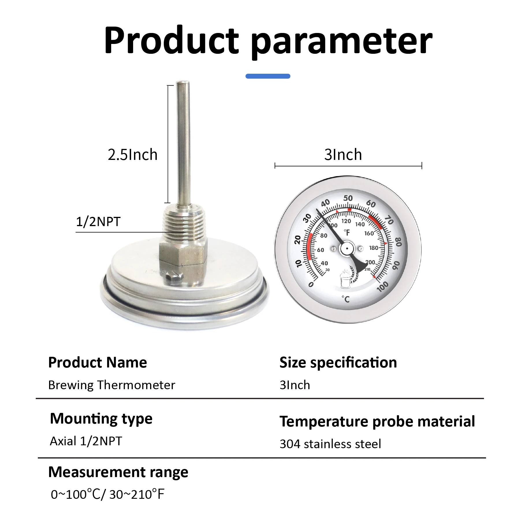 Stainless Steel Dial Bimetal Probe Thermometer Household Boiler Brewing Distilled Water Alcohol Thermometer Accessories