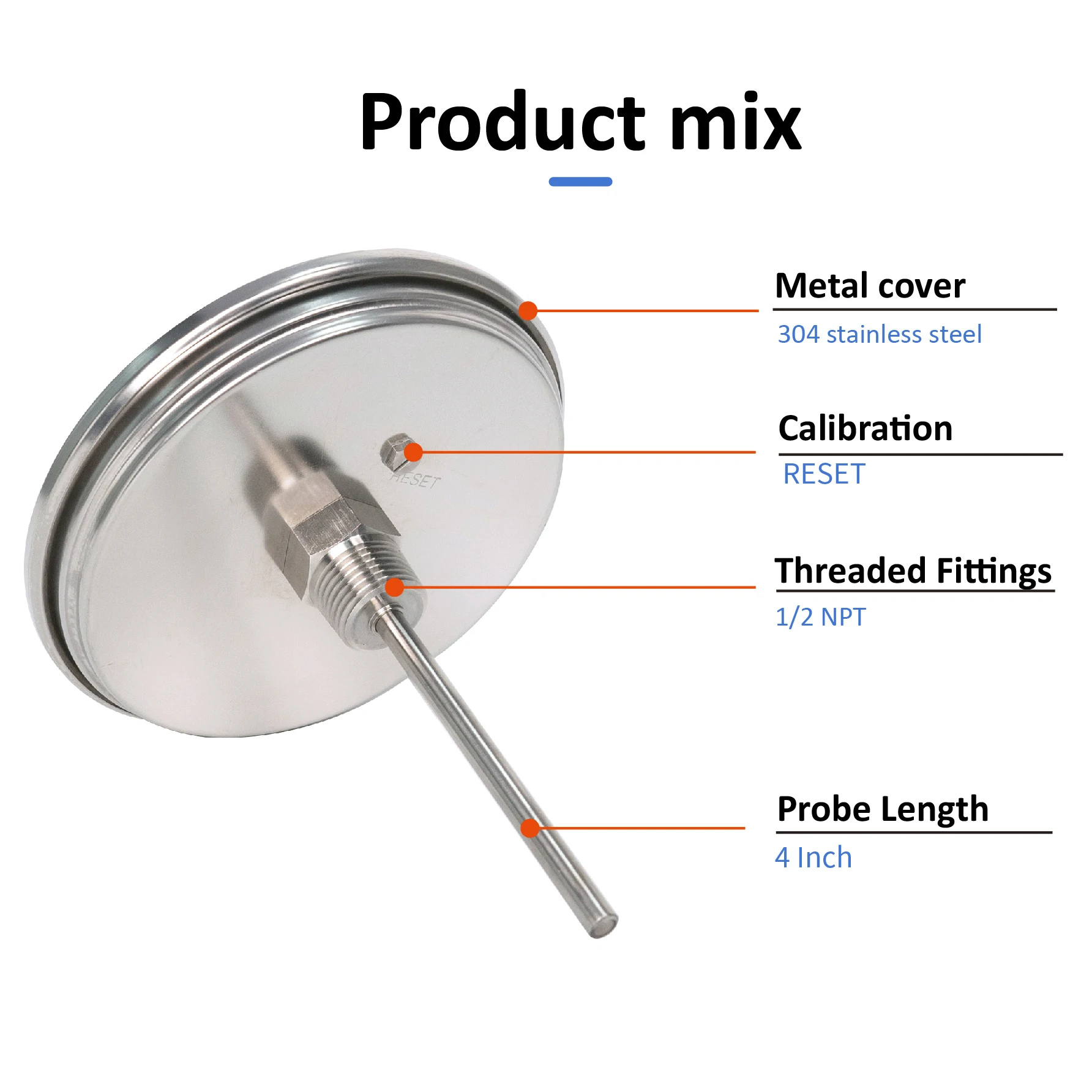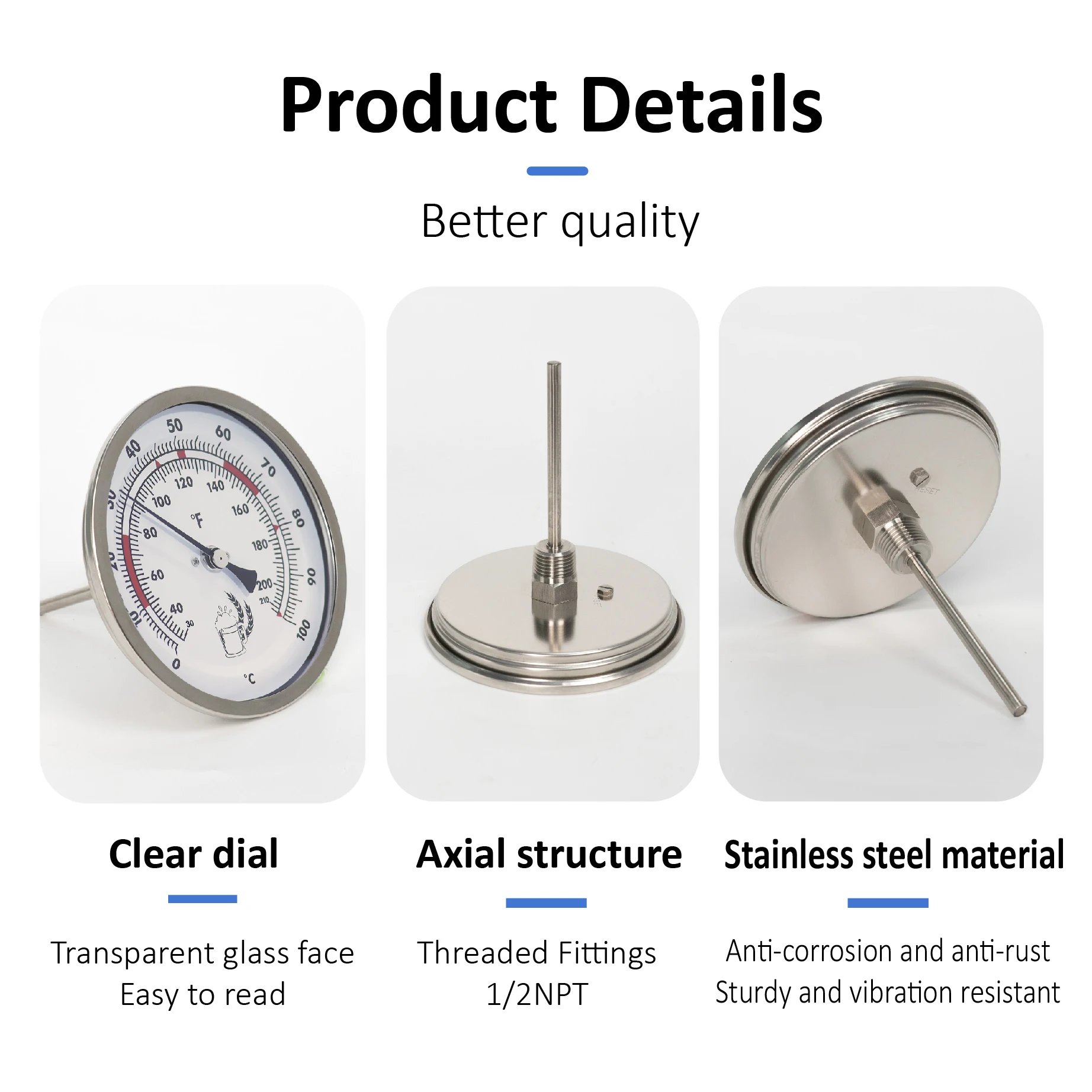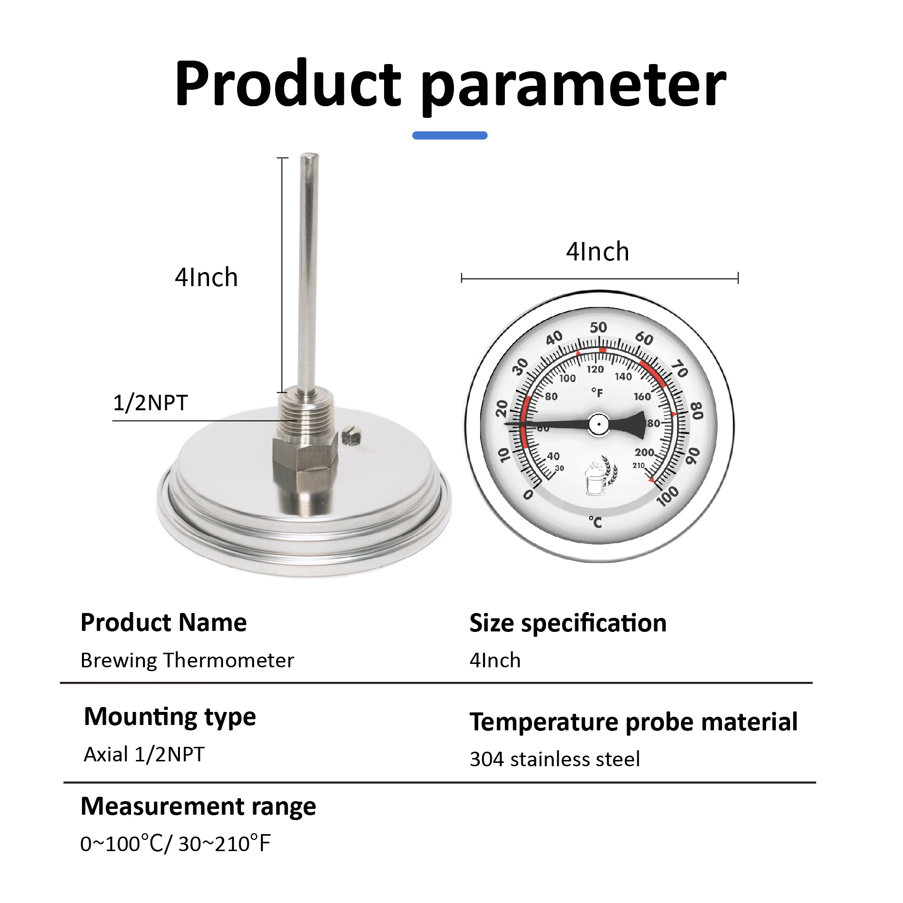 Stainless Steel Dial Bimetal Probe Thermometer Household Boiler Brewing Distilled Water Alcohol Thermometer Accessories