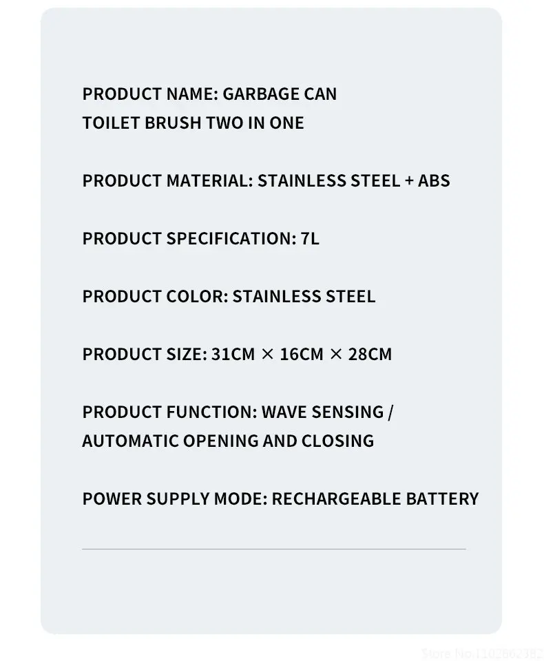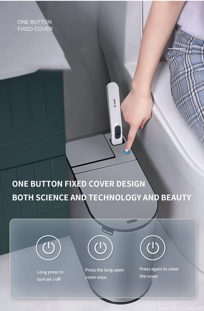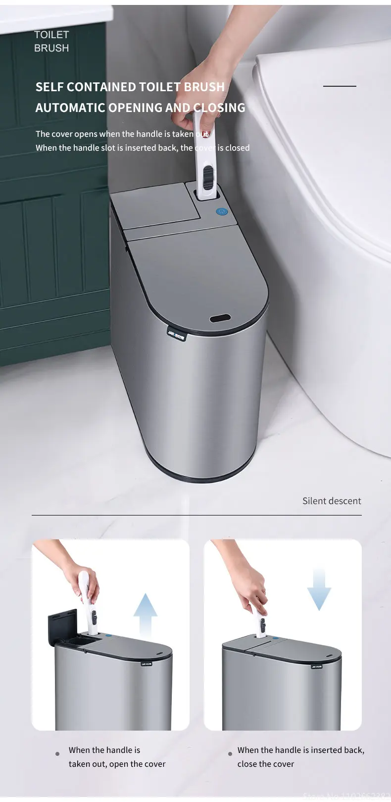 Stainless Steel 7L Smart Trash Can Toilet Brush Set Waterproof Trash Bin Narrow Garbage Smart Sensor Bucket for Lid Bathroom