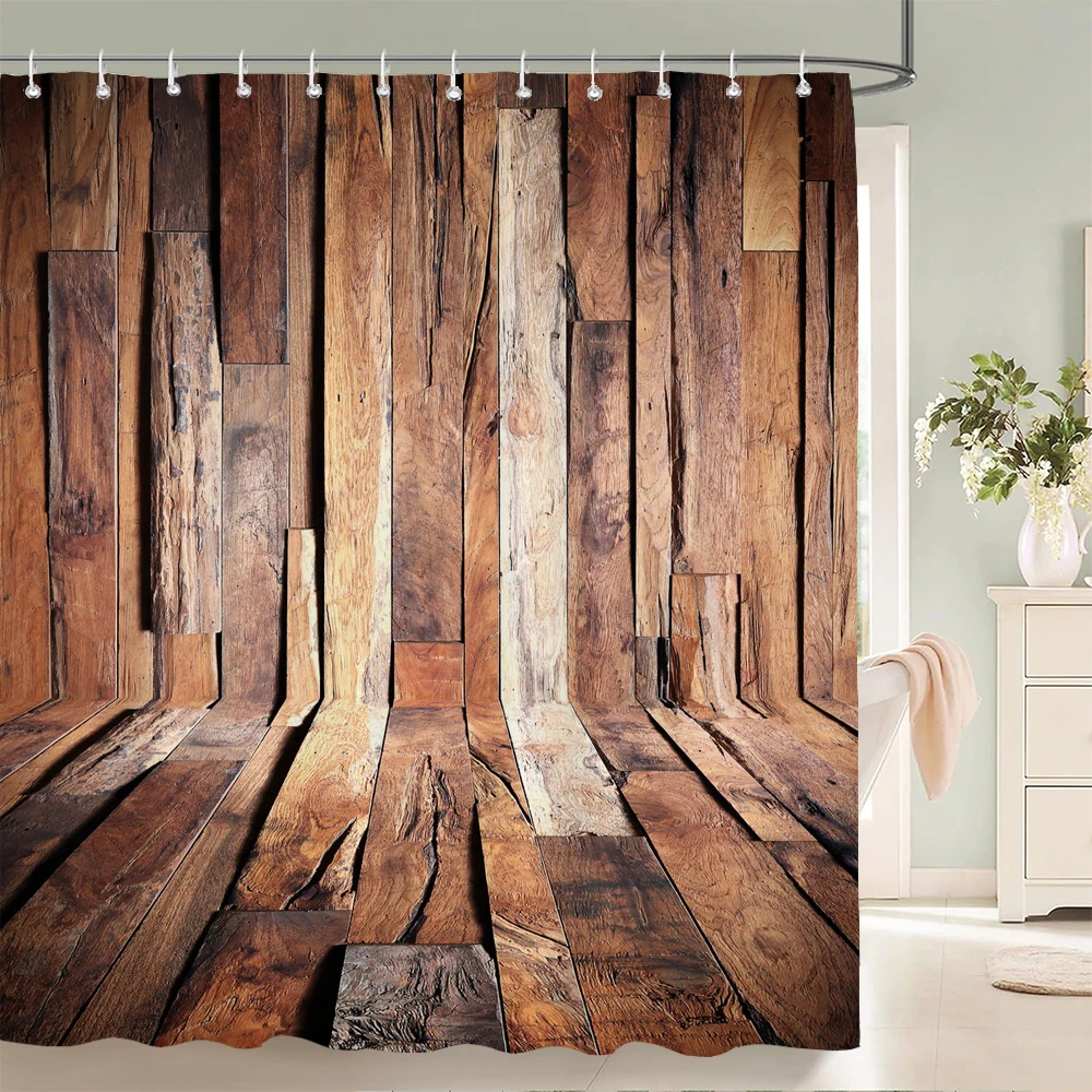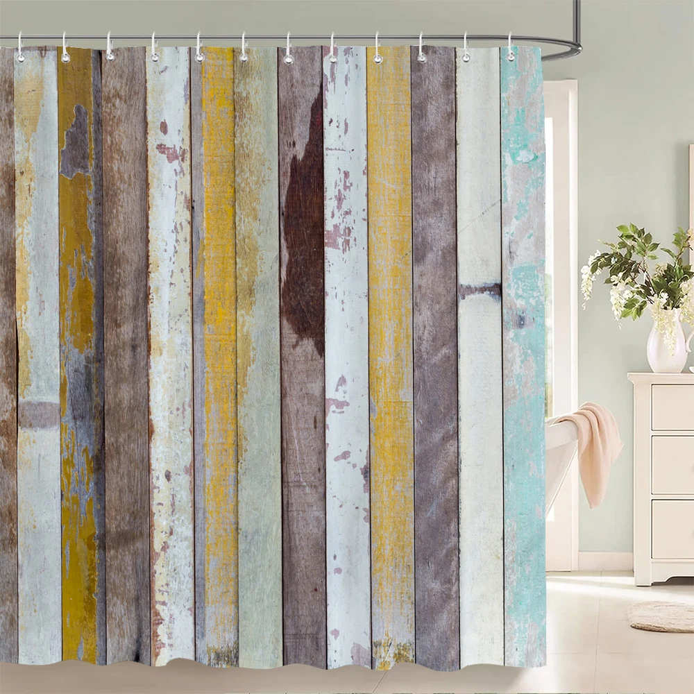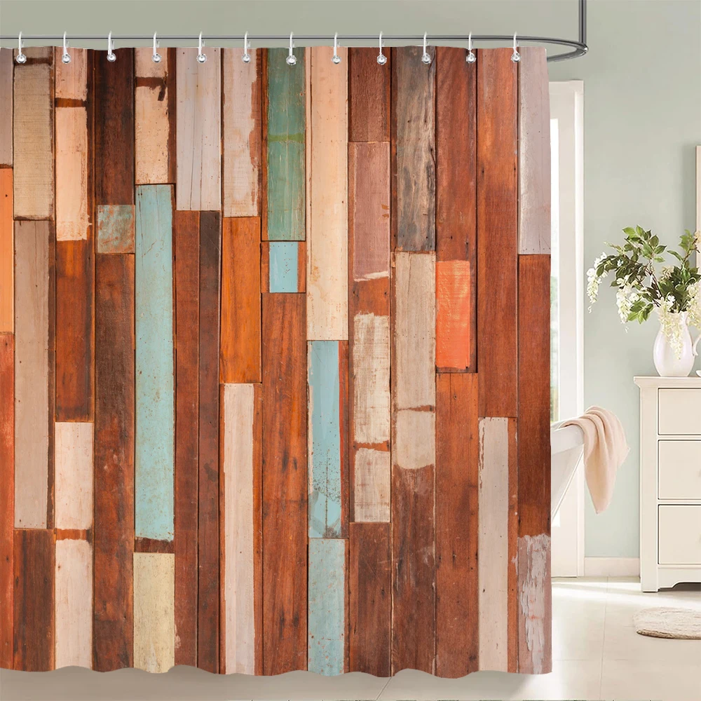 3D Retro Old Wood Pattern Shower Curtains Europe and America Style Printed Bath Curtain Waterproof Bathroom Shower Curtain