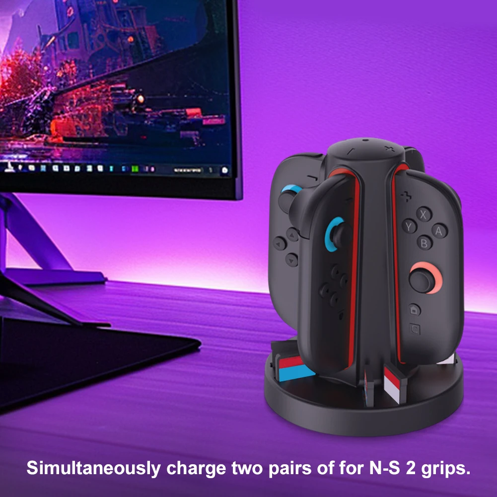 1.Charging Efficiency: Designed for controller charger, this stand can charge two pairs of N-S 2 left and right controllers simultaneously.