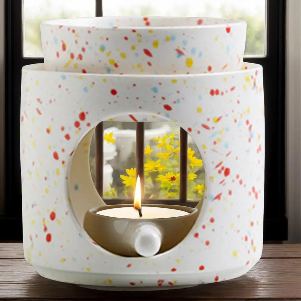 3.Multiple Functions: This ceramic tealight candle holder, suitable for different spaces, can be used for candle burning, heating oils, or melting fragrance wax blocks to create a romantic atmosphere