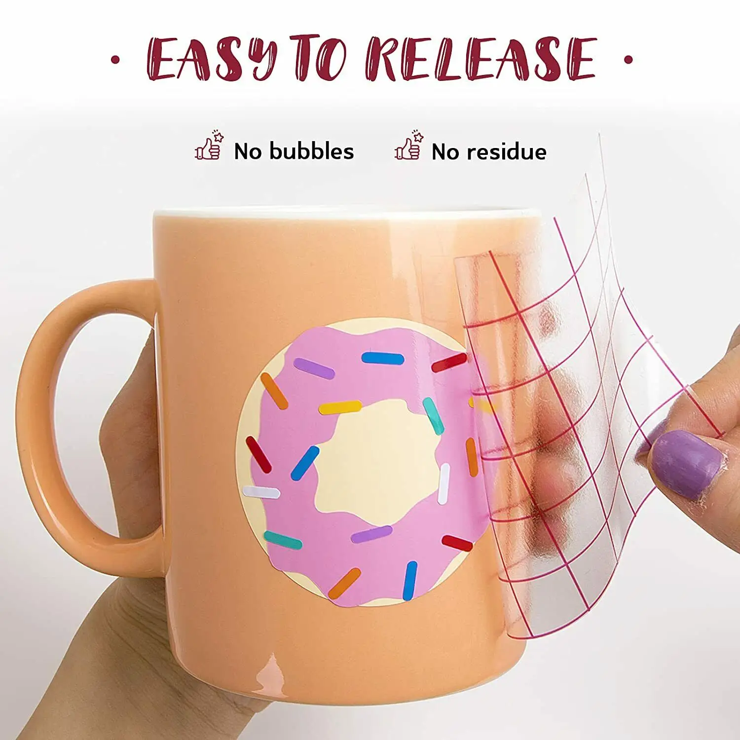 【MEDIUM TACK & EASY TO TRANSFER】:Not too sticky that you can't transfer your designs, but sticky enough to easily lift your project and transfer it to your surface effortless, our clear transfer tape for vinyl is trouble-free and user-friendly for all project, even more smaller works.