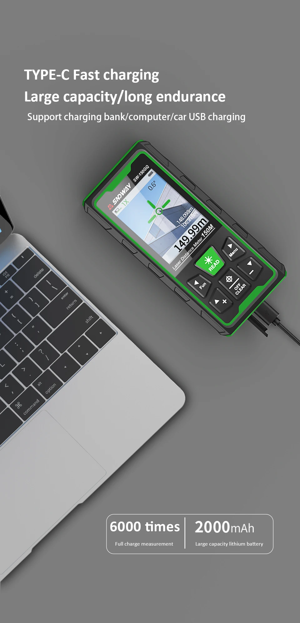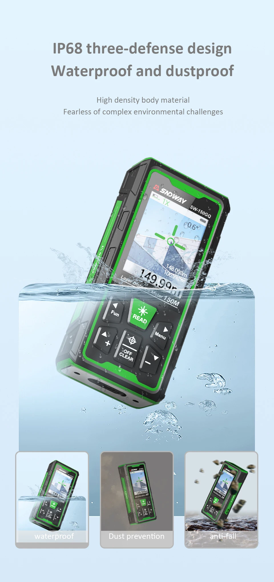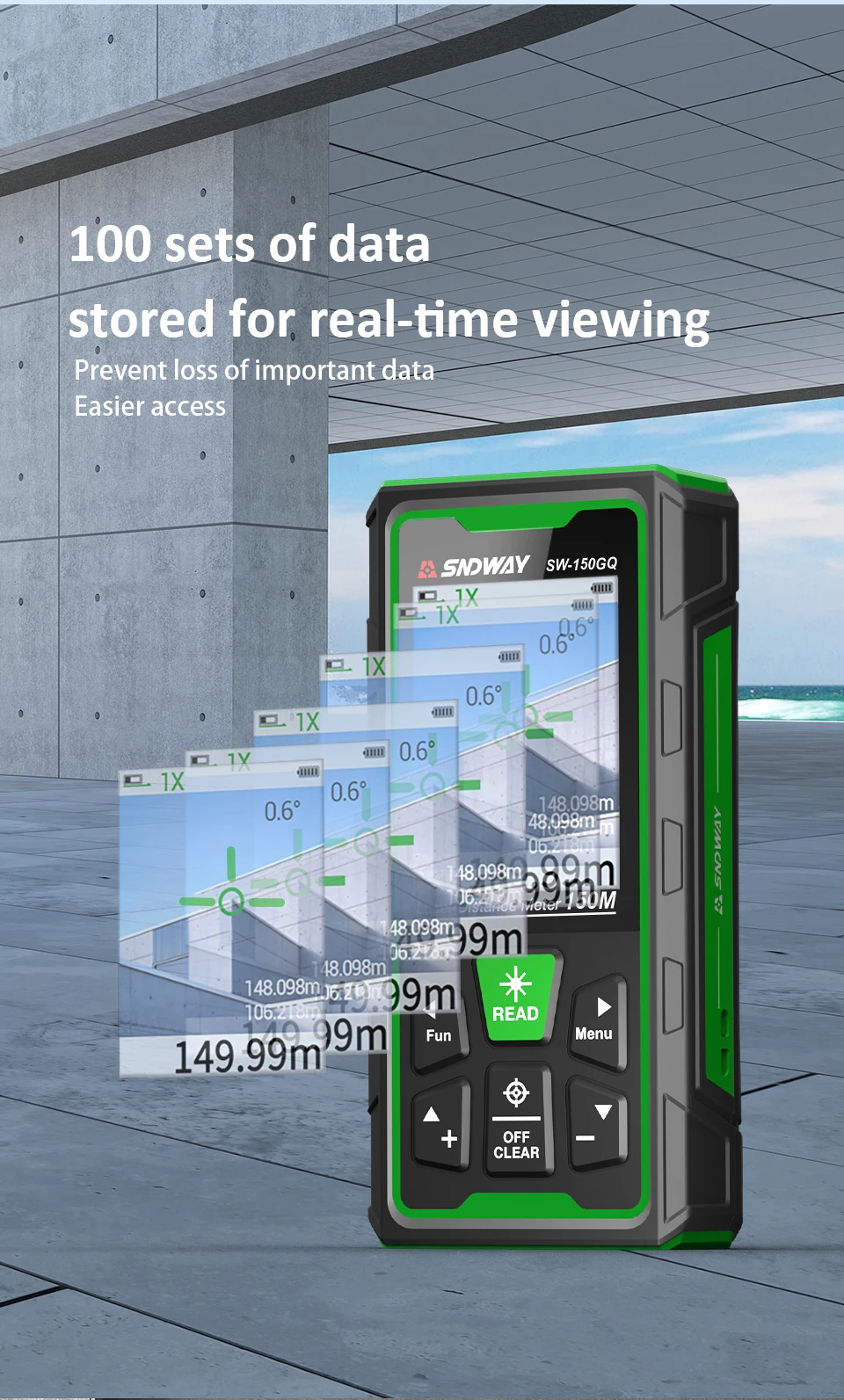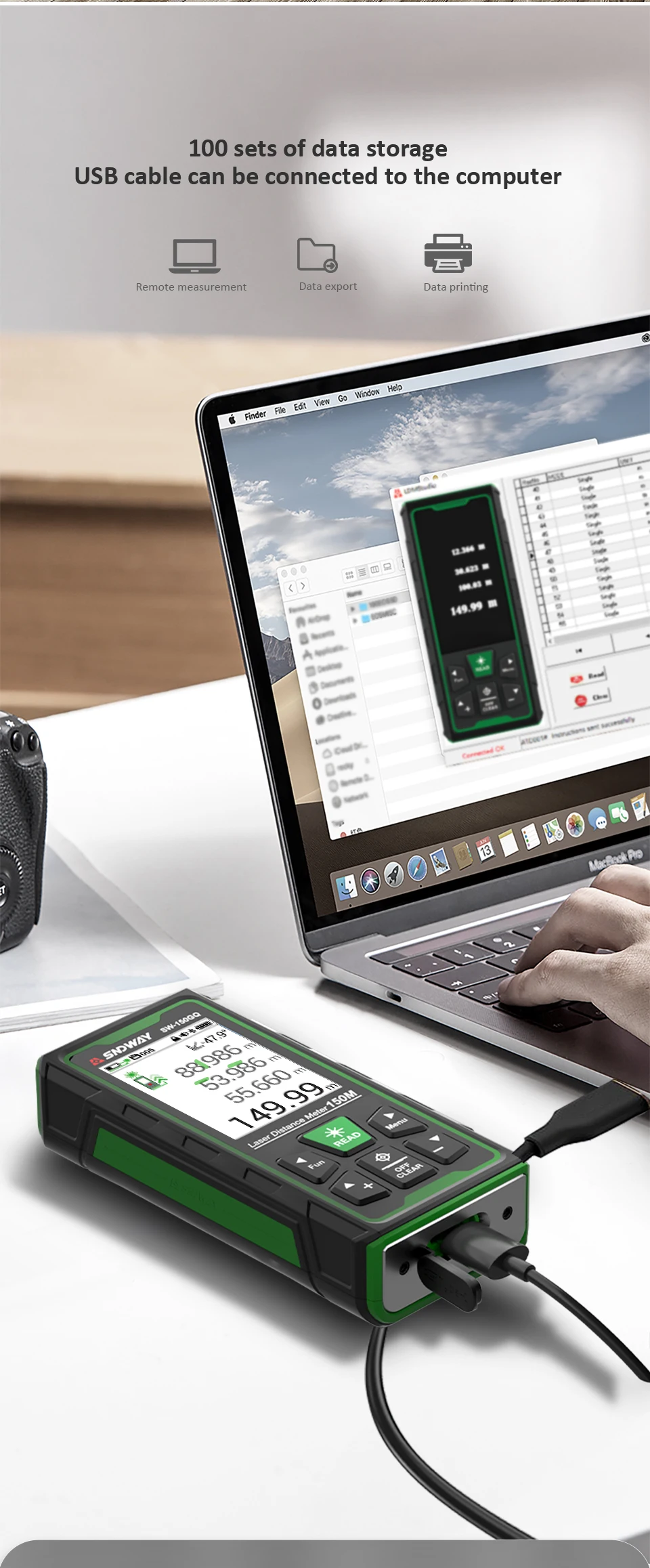 ●Easy remote measurement: Green light+camera BUFF overlay, 4X camera focus, easy to find points for outdoor measurement.