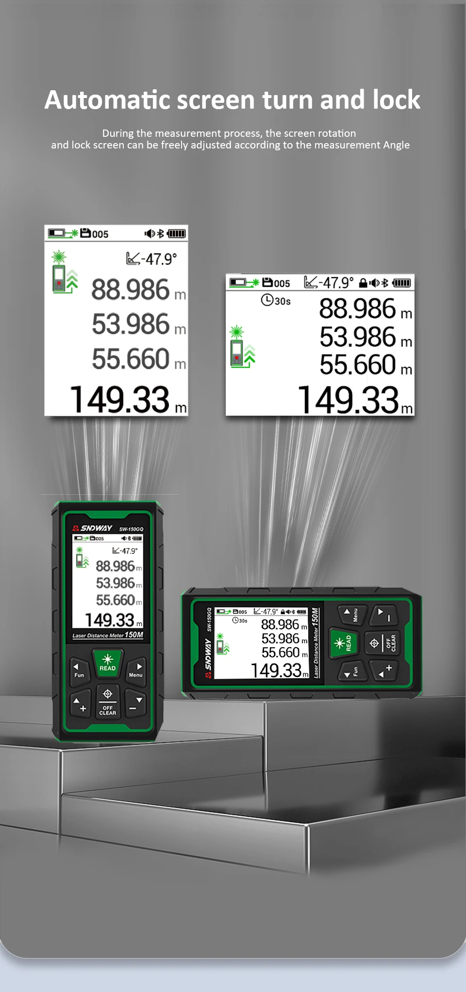 ●Automatic screen rotation: The screen can be freely adjusted to rotate and lock according to the measurement angle.