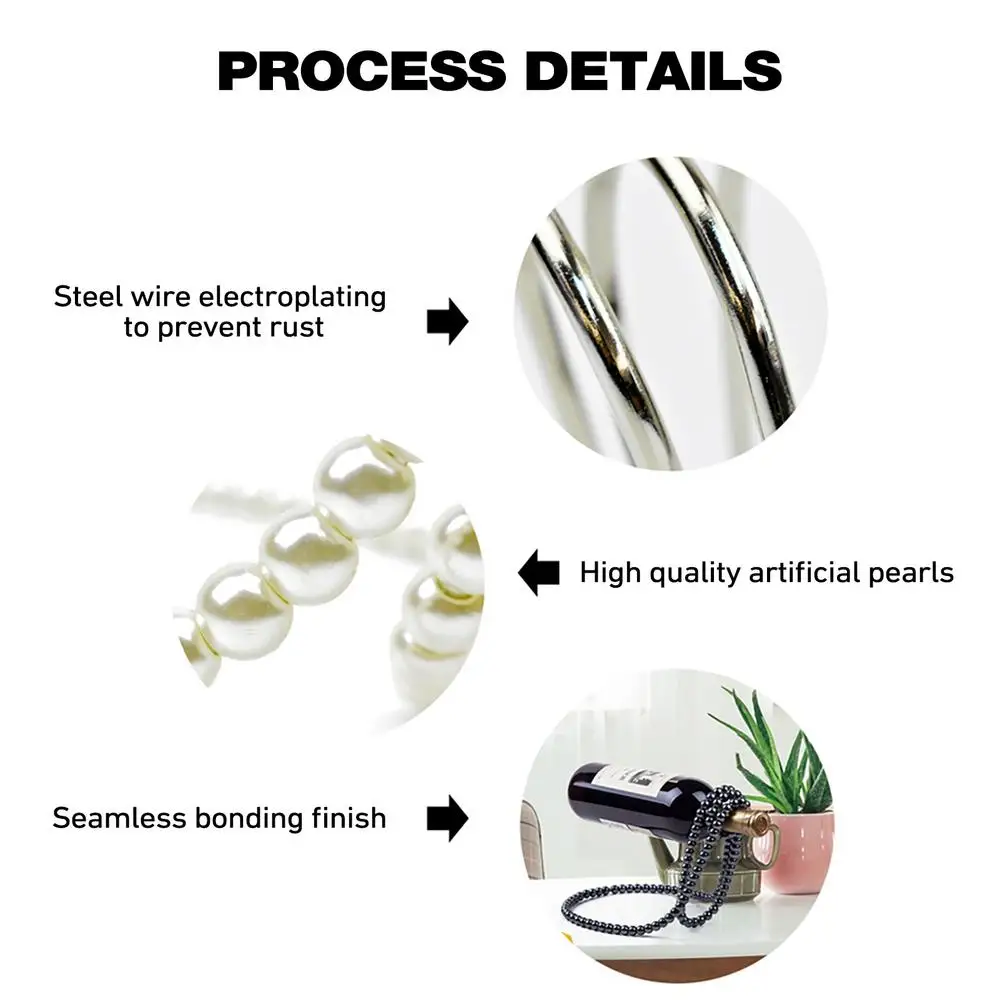 1.Sophisticated Design: The pearl chains are blended with metal brackets, creating a balanced contrast between the shiny and delicate pearls and the strong and smooth metal.