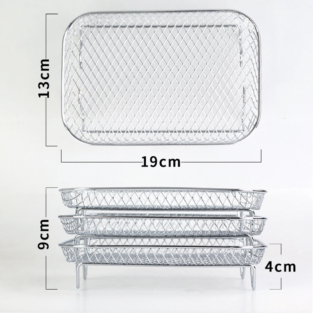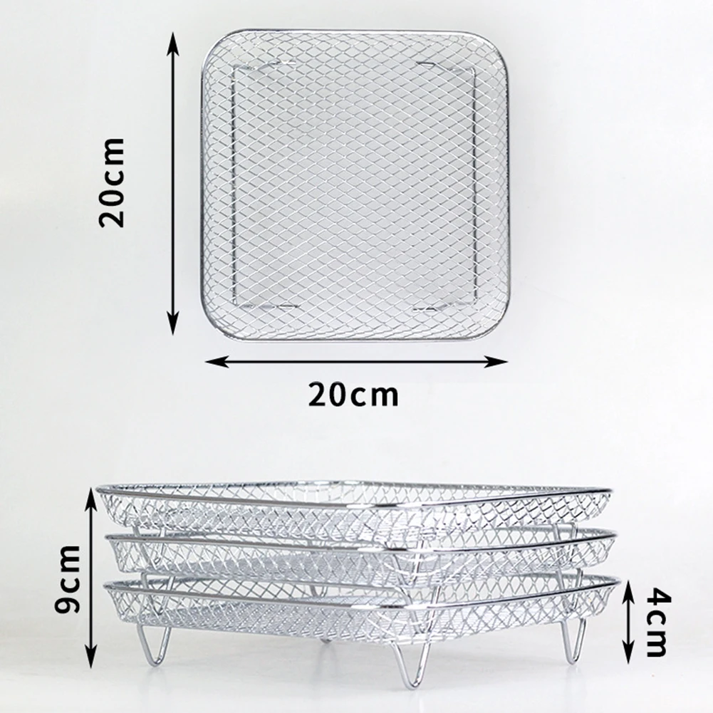 3Layer Air Fryer Racks Stainless Steel Square Air Fryer Basket Tray Stackable Dehydrator Racks Air Fryer Accessories Fit Kitchen