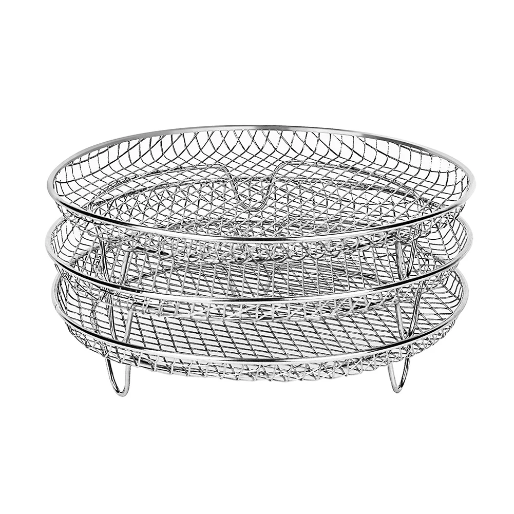Air Fryer Rack Grilling Rack Stainless Steel Air Fryer Oven Grill Steamer 3 Layers Mesh Grill Basket Stackable for Home Kitchen