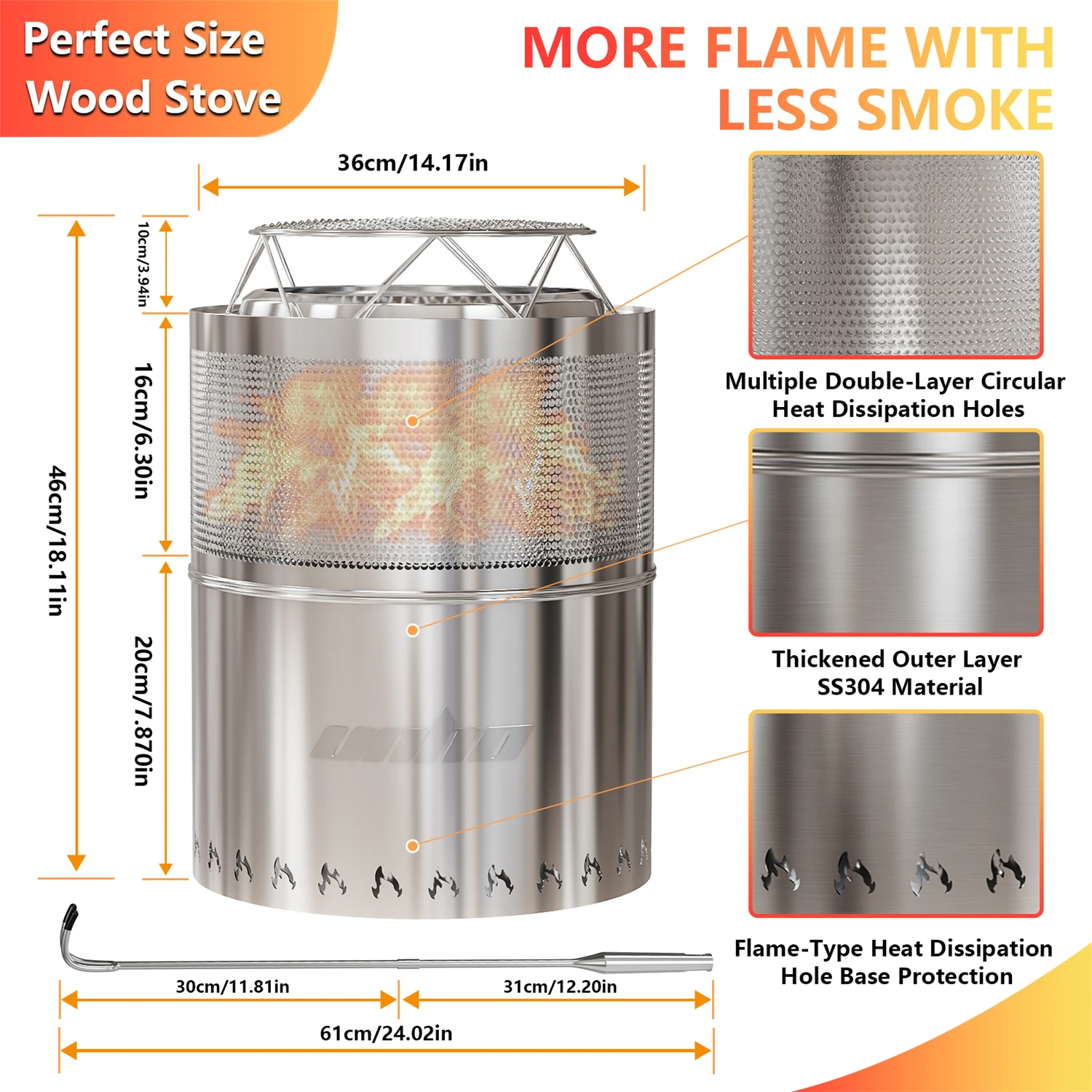 Fire Pit Stove Dimension: L * H 36x36cm/ 14.17x14.17 inch