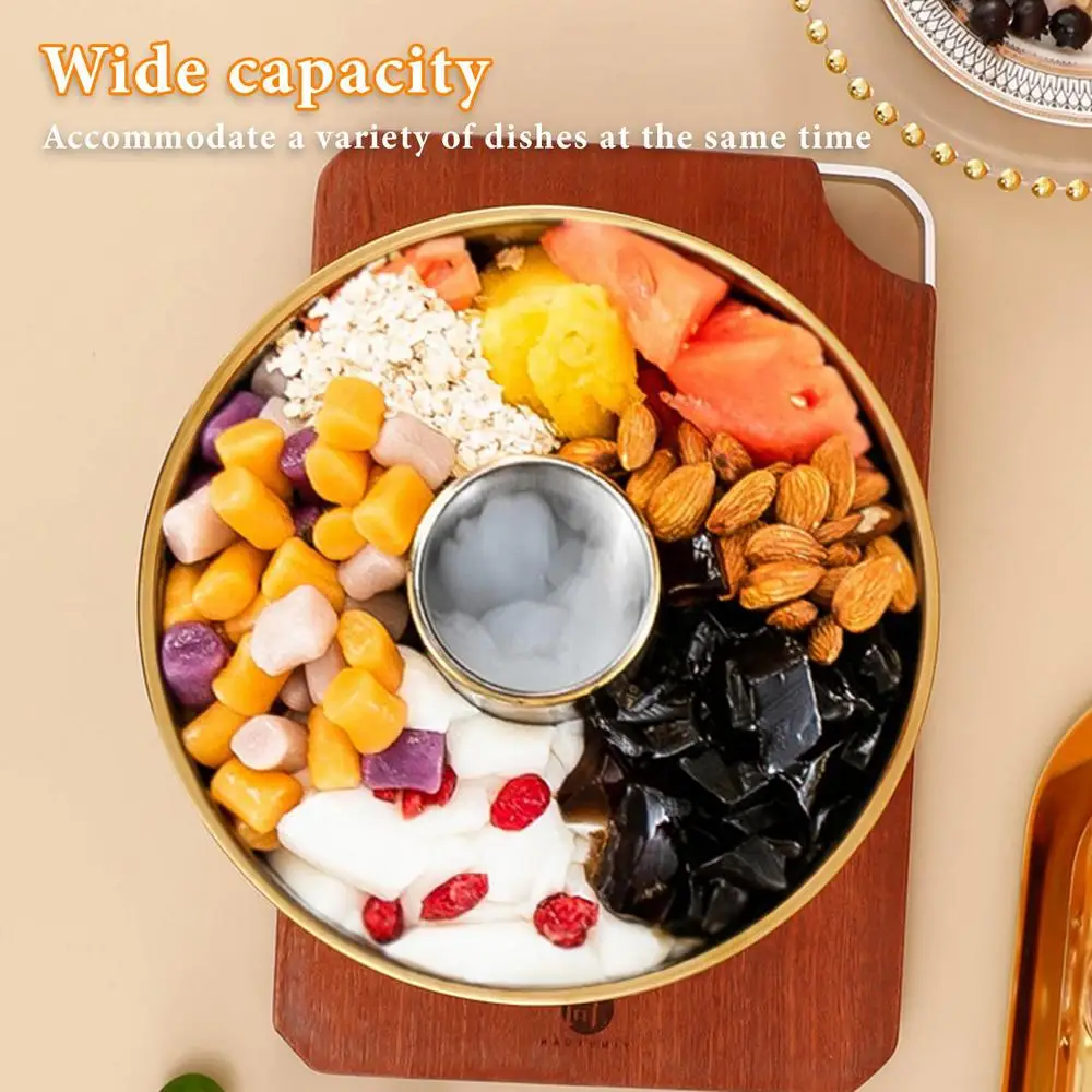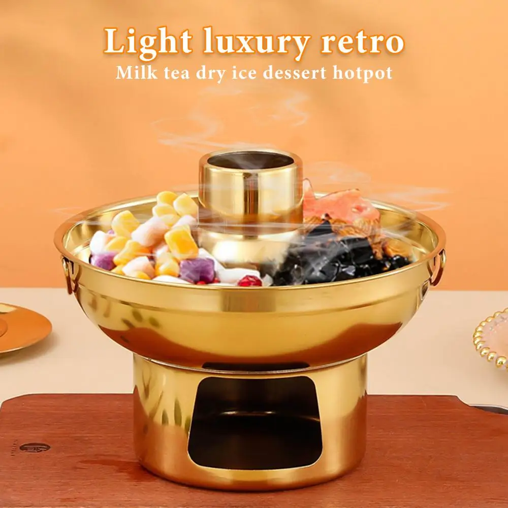 2.Multi-purpose Design: Boasting a roomy interior and versatile construction, this stainless steel hot pot can hold an assortment of foods simultaneously, ideal for serving up delicious fruits, desserts, milk tea, and a range of other tasty treats