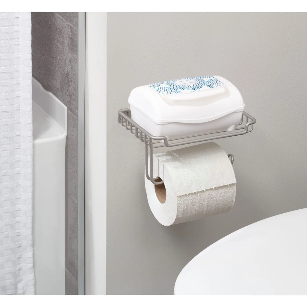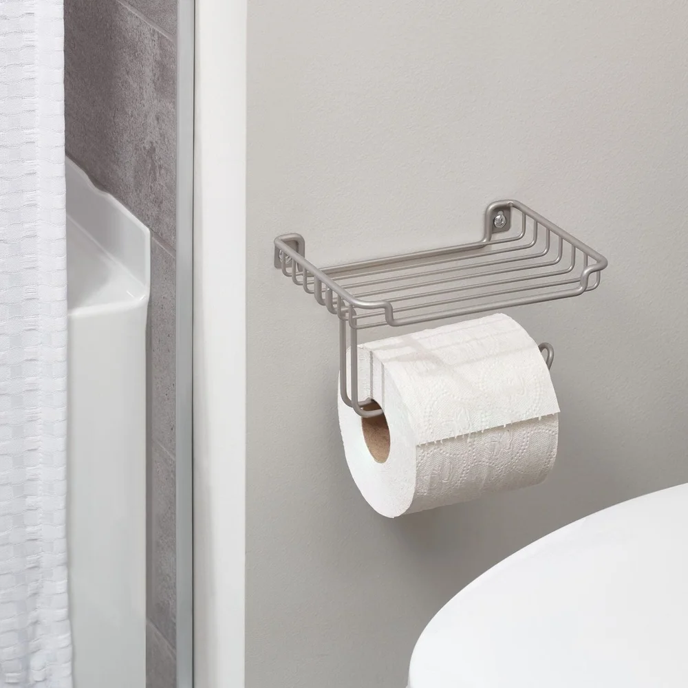 Wall Mount Toilet Paper Dispenser with Shelf Storage Wipes Phones Durable Steel Easy Installation Bathroom Organizer