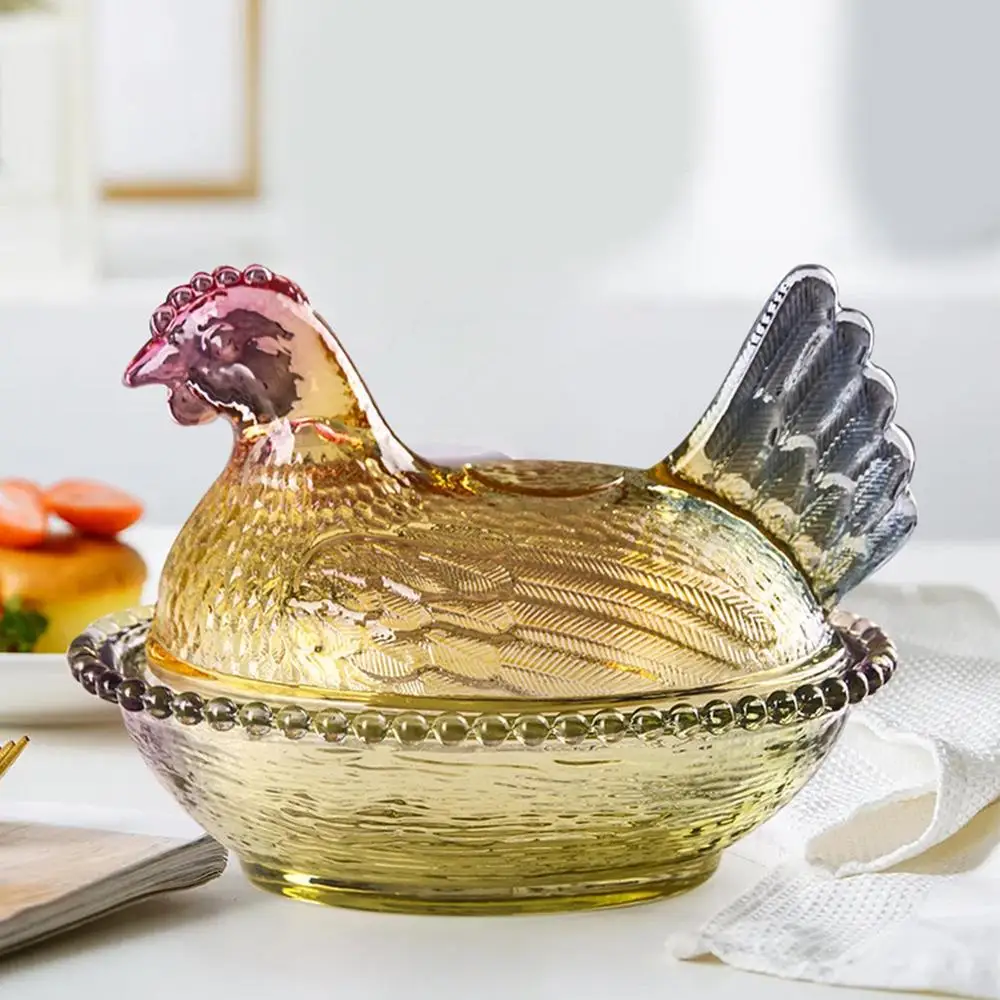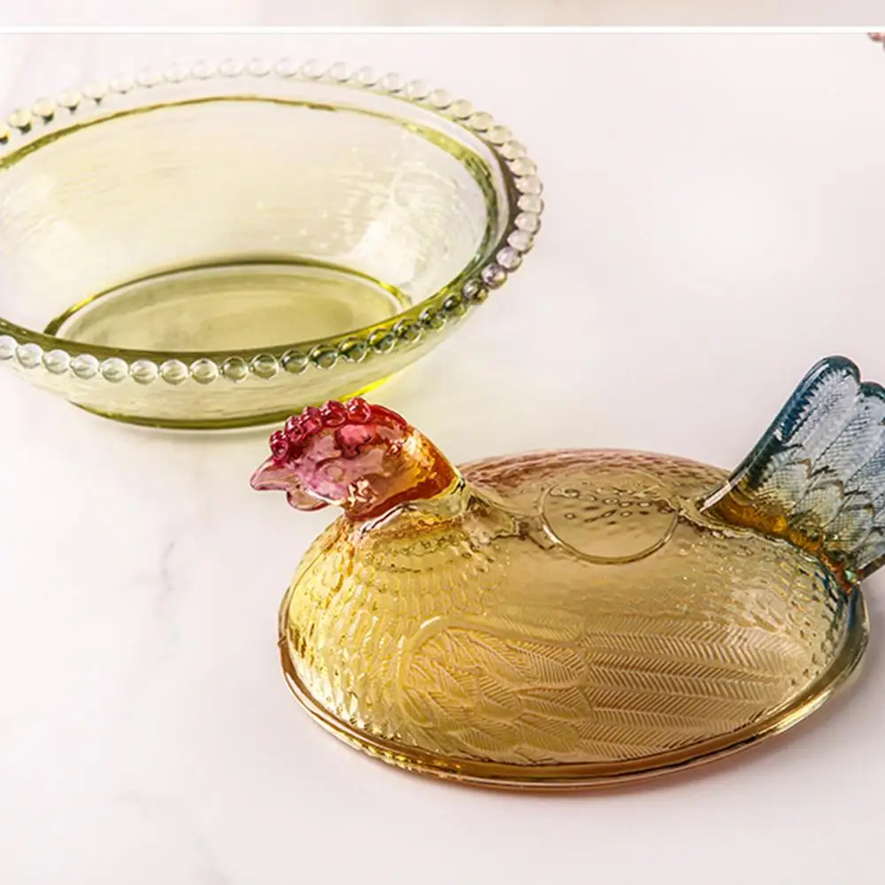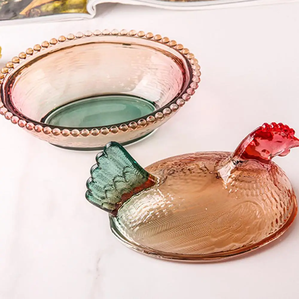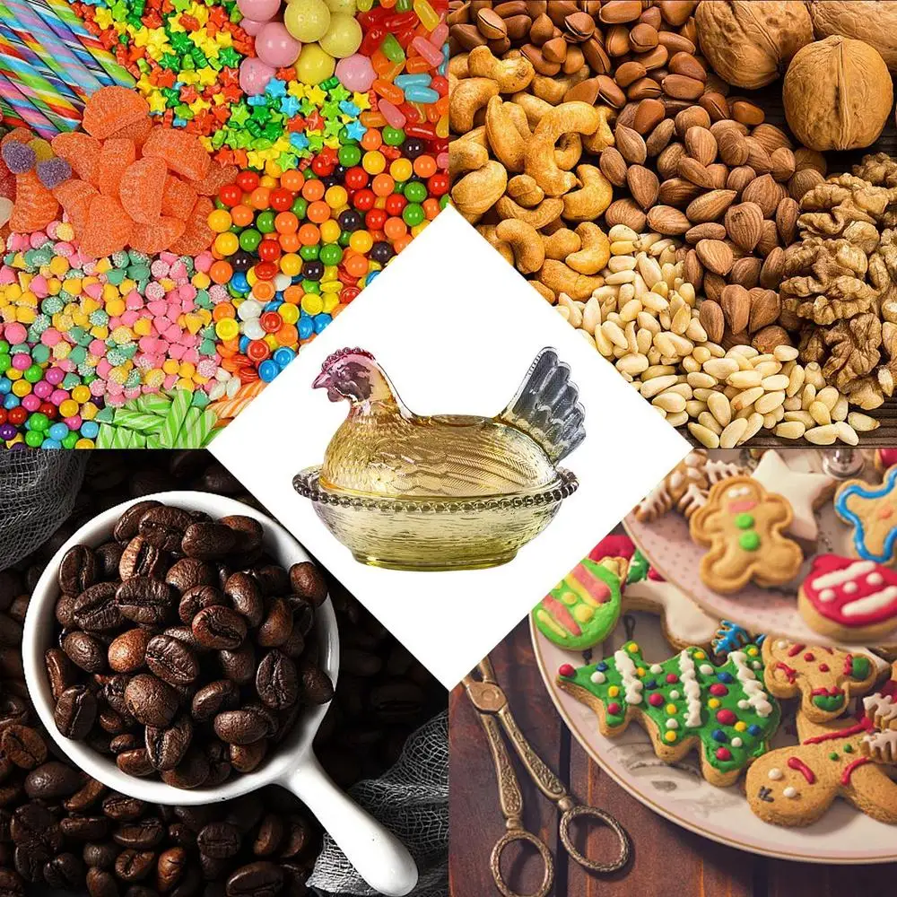 2.Long-Lasting Use: The thickened translucent glass construction of this chicken candy dish with lid ensures it's wear-resistant, difficult to break, and reusable, making it a stable storage solution