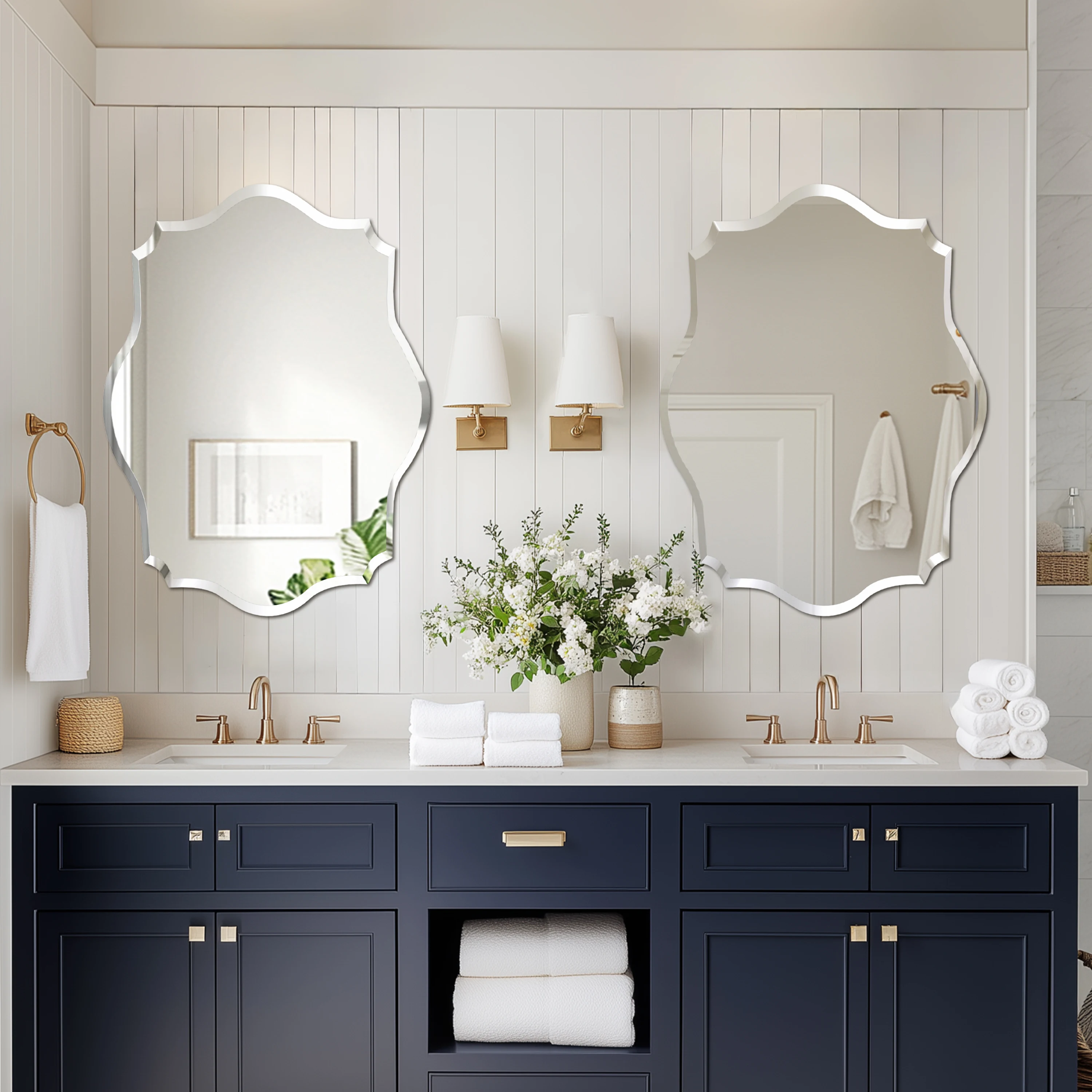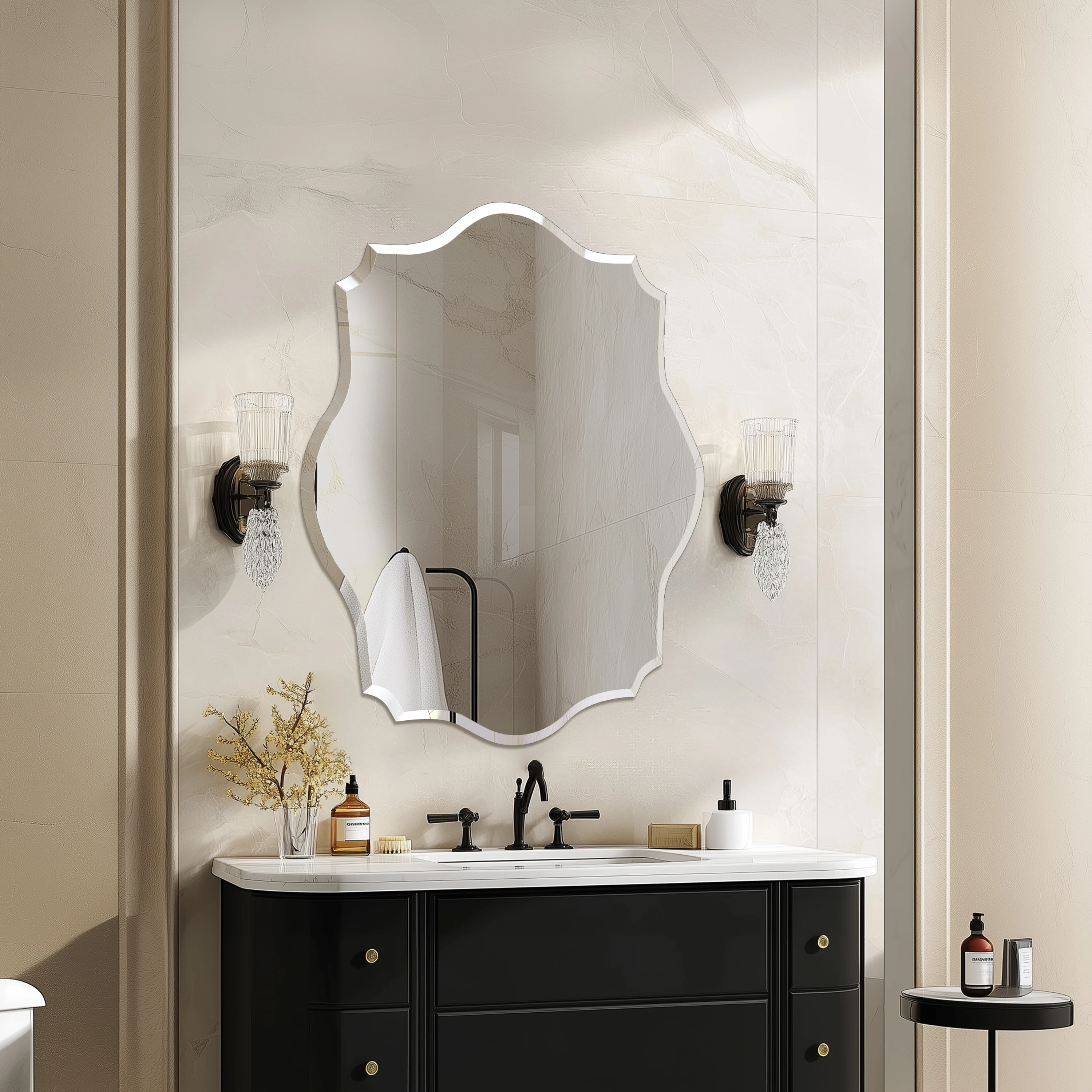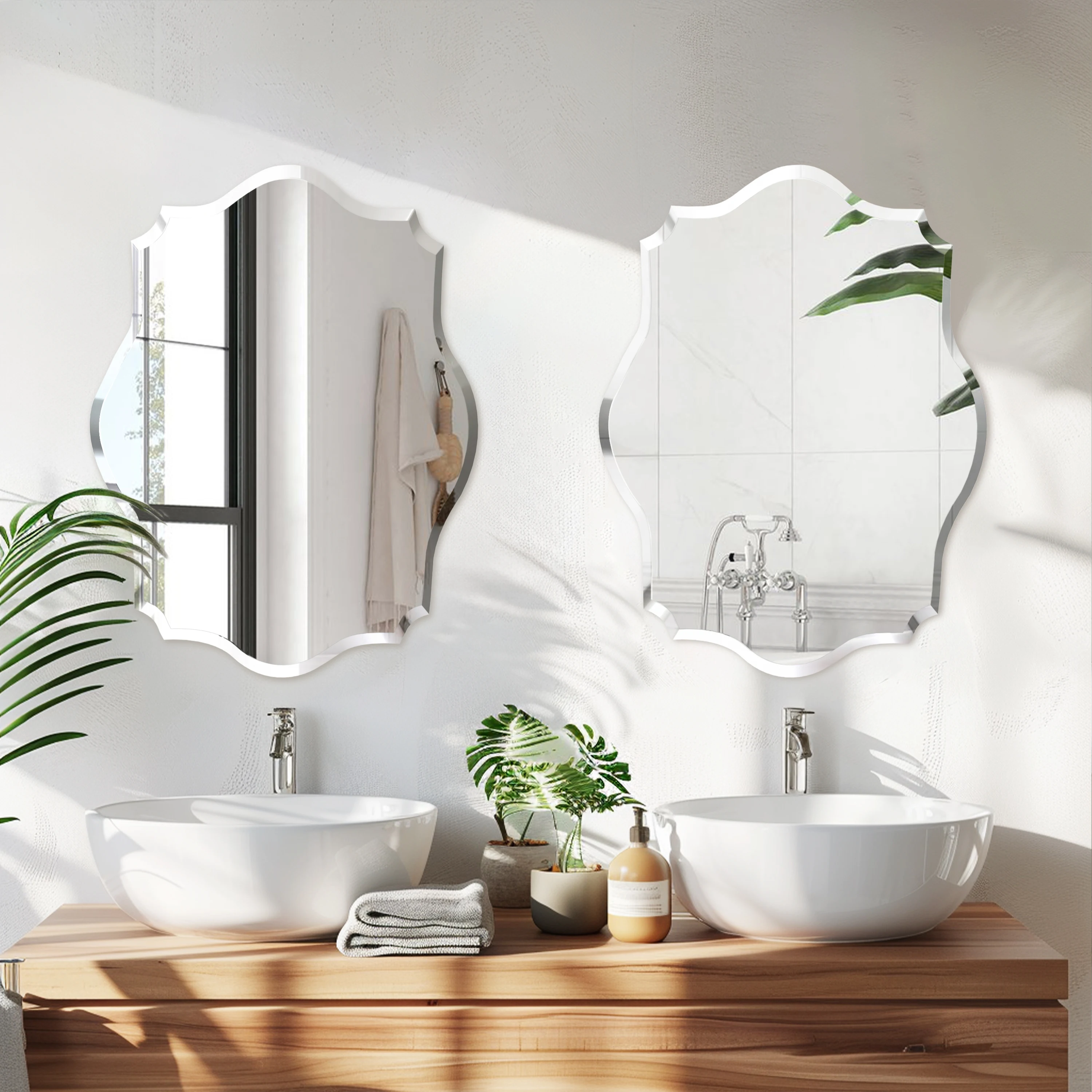 【Irregular Glass Mirror】This frameless mirror boasts an irregular shape that presents a refreshing departure from conventional design, which breaks away from traditional shape, inviting creativity and individuality into any space, its unique contours create a dynamic visual appeal, adding an element of minimalist and intrigue to any spaces it inhabits, allows for more creative freedom in arranging layout