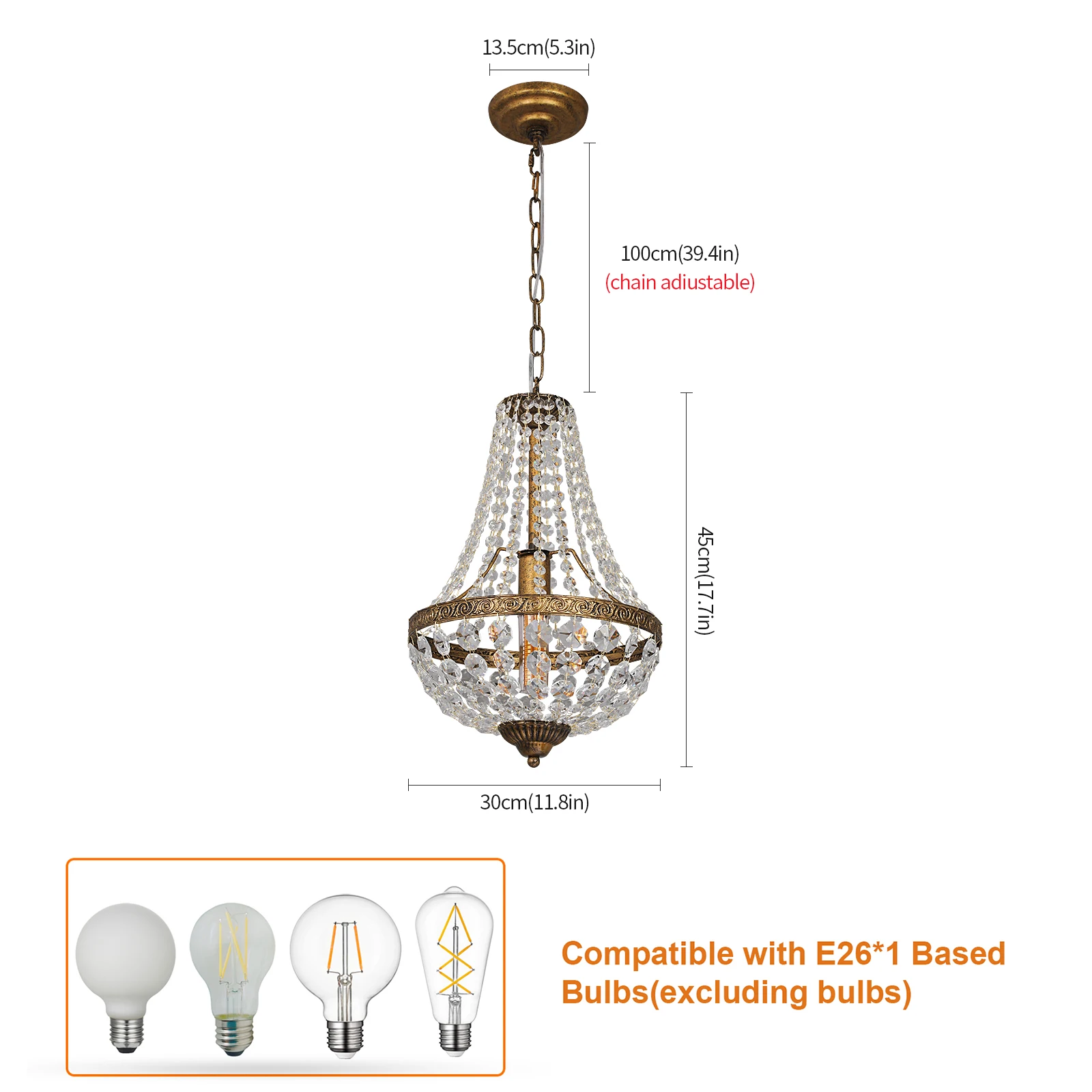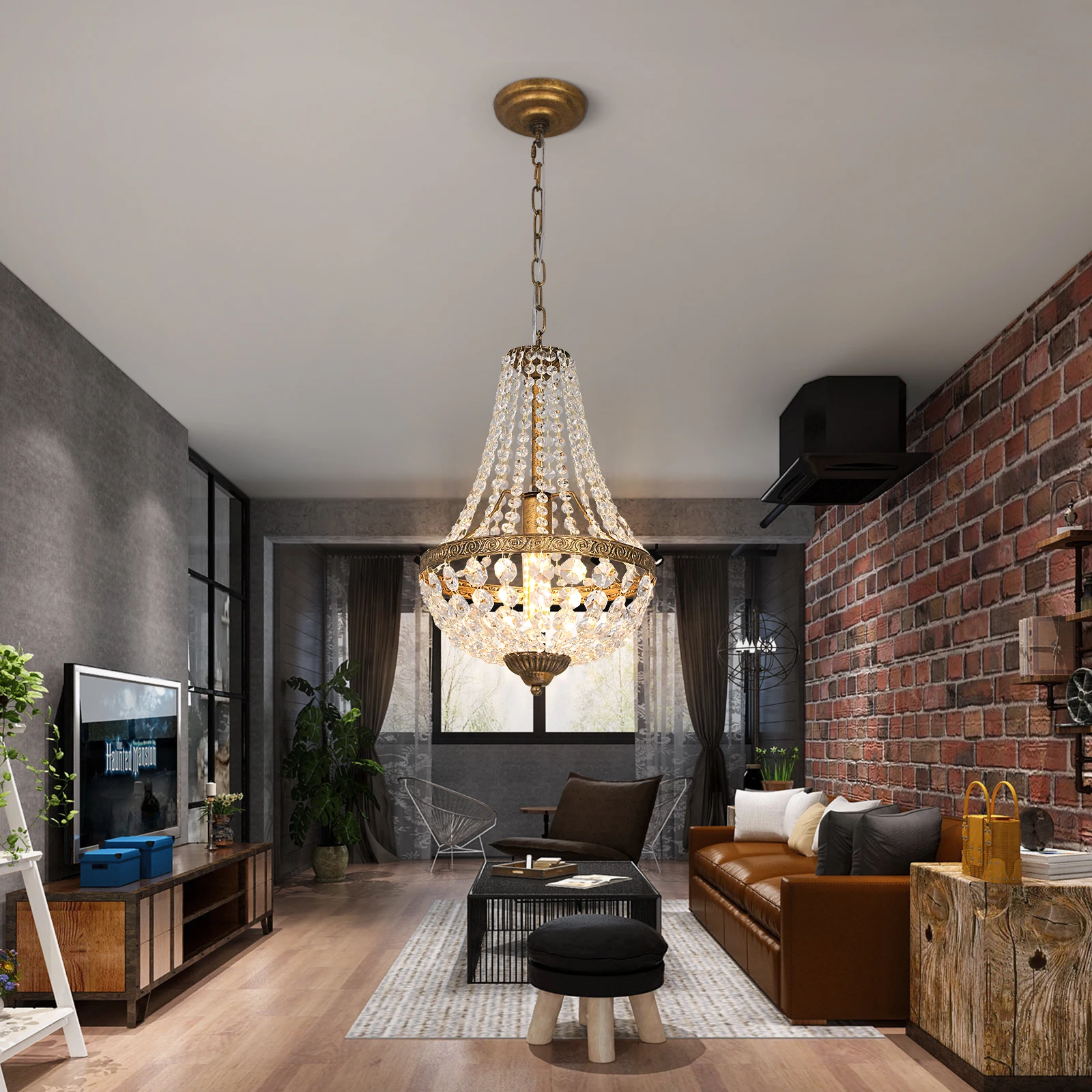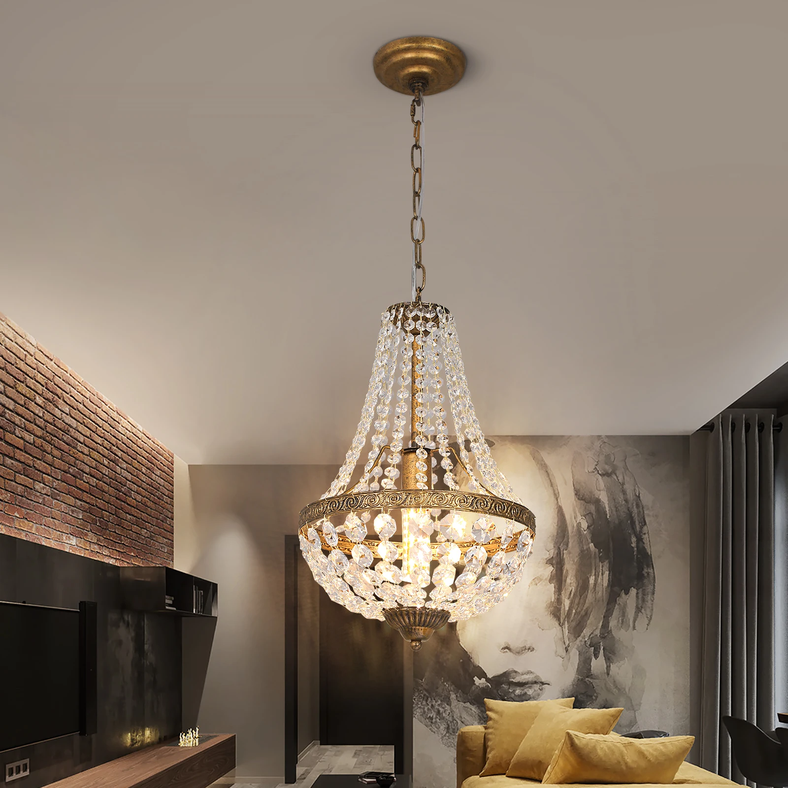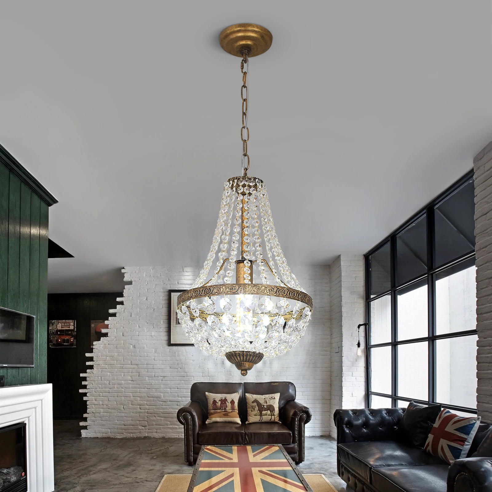 Retro Pendant Light Luxury Crystal Basket Ceiling Lamp Chandelier Led Nordic Dining Living Room Decor Hanging Lustre Fixture