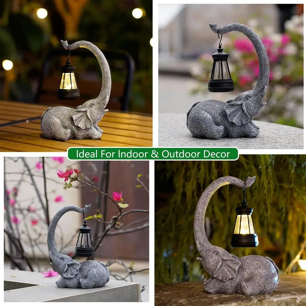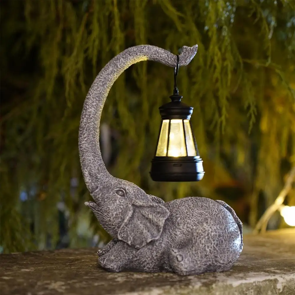 Elephant Solar Light Sculpture For Garden/Yard Decoration Gifts For Women Men Mum Birthday Gift Waterproof Resin Ornament Craft