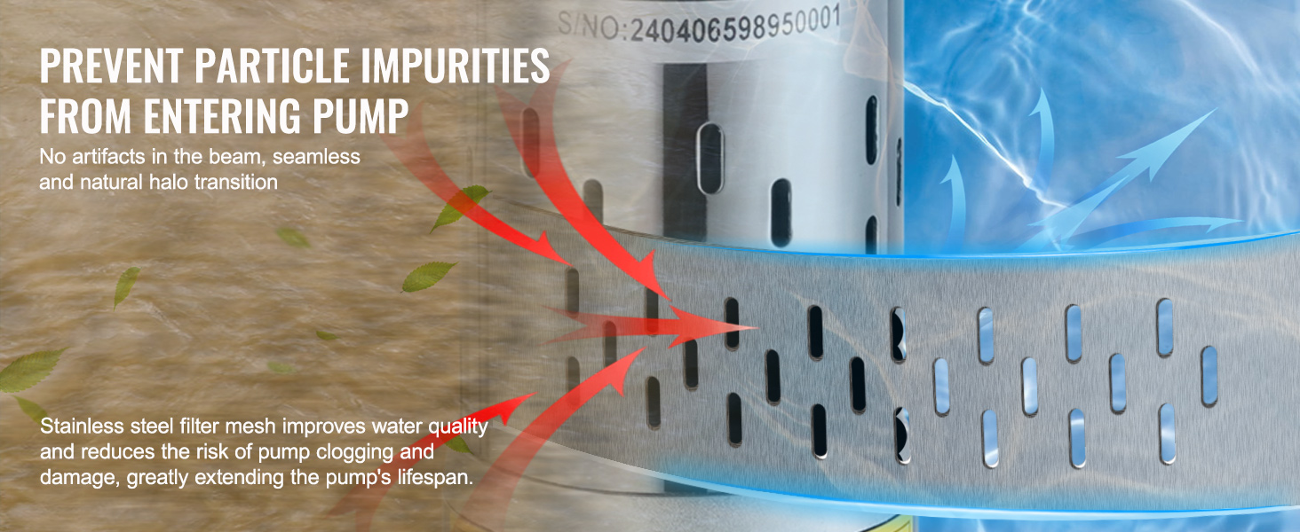 • 【IP68 Waterproof Rating】: Featuring an excellent sealed pump body structure, our solar water well pump handles underwater work, so you can leave it submerged year-round. Designed for use only with clean water/freshwater, not for contaminated water or seawater. The stainless steel filter mesh effectively filters impurities and particles, reducing the risk of pump clogging and extending its lifespan to over 800 hours-1200 hours.