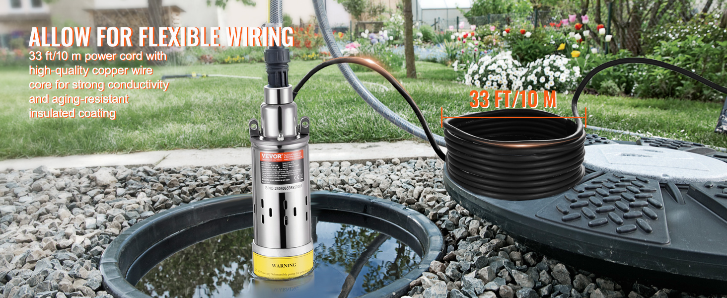 • 277W 9.25GPM & 369W 8.4GPM——Perfect for wells over 3 inches in diameter, our solar pump comes with a generous 33 ft power cord, giving you plenty of reach without the hassle. We only provide the solar well pump, so you need to prepare solar panels, controllers, and pipes to build a complete solar water transfer system.