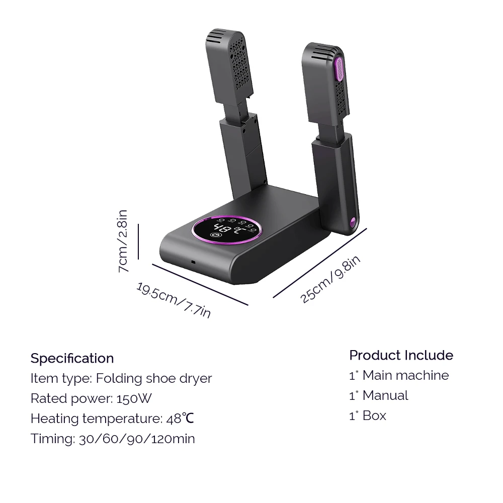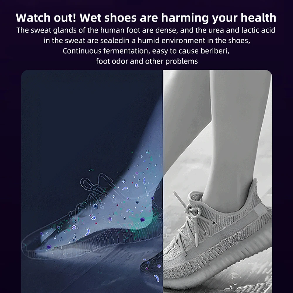 1.High temperature sterilization. High-precision uniform fan, 48° hot air directly destroys the bacterial hotbed, 20min drying and de-sweating, refusing sweaty feet, moisture and other bacterial breeding, preventing foot odor.