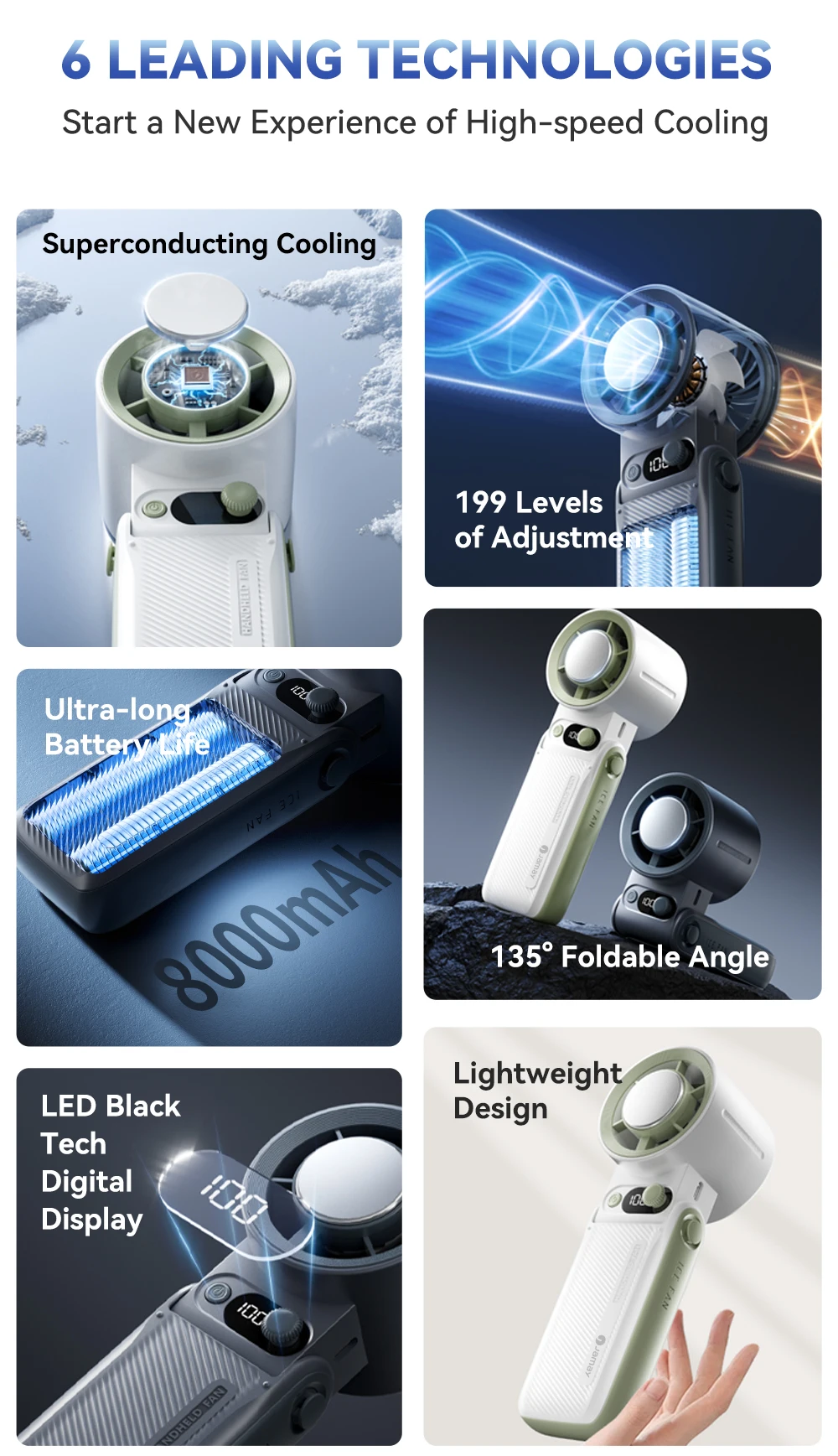 You can flexibly adjust the Angle according to your actual needs and find the most suitable use position. Whether you are sitting, lying down or standing, you can accurately enjoy the comfortable cool air.