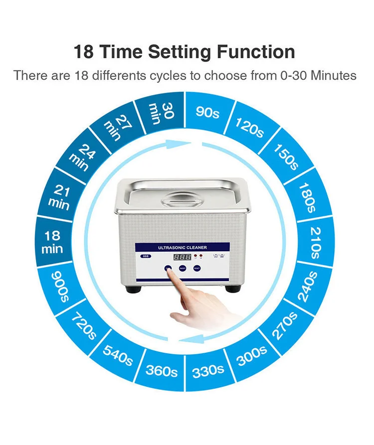 2. Soak the items to be cleaned in the liquid, and then select the corresponding time gear. Choose the items to be worn daily for 3-5 minutes. The specific time can be flexibly adjusted according to the degree of the product dirt or cleaned multiple times.