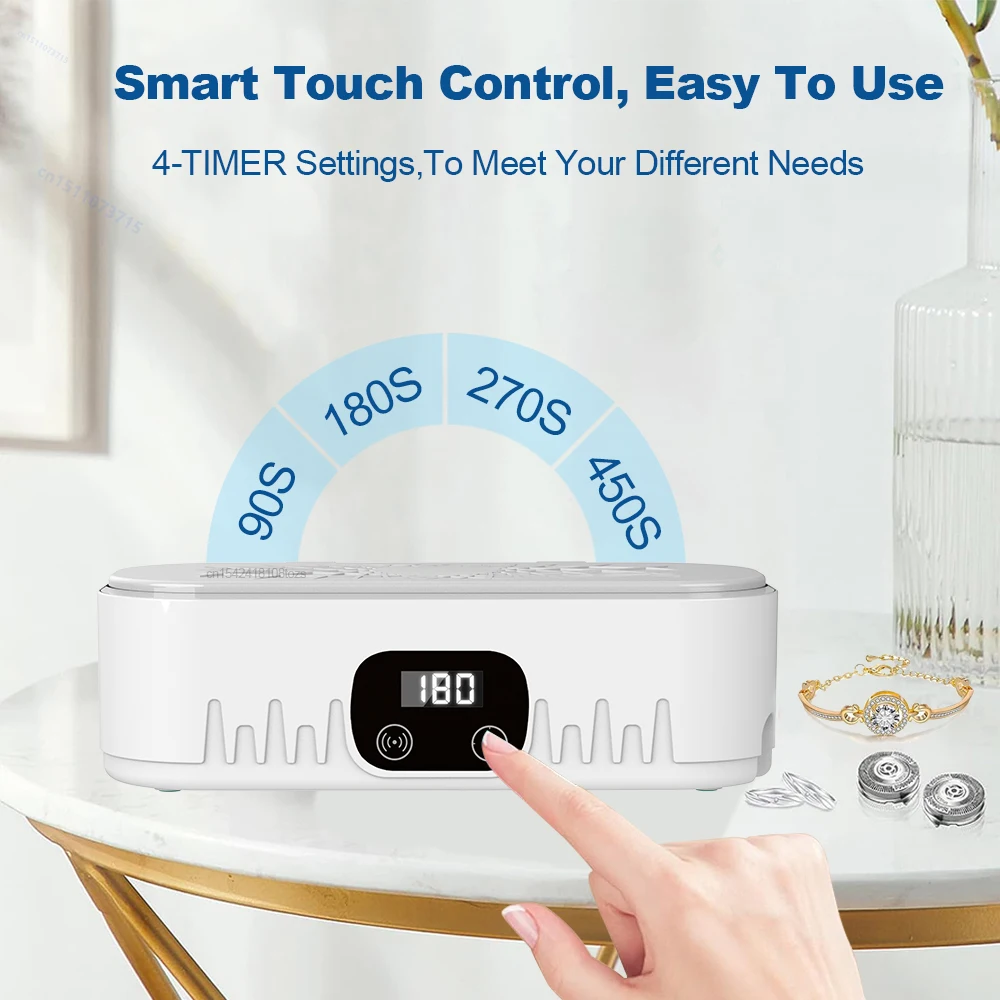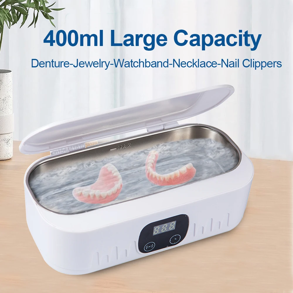 Large capacity: Our ultrasonic cleaner has a substantial capacity of 400 ml, allowing it to hold a variety of items at the same time. To complement this ample space, the cleaner is built to last with a 304 stainless steel inner tank and an ABS outer shell, adding to its durability and elegance.