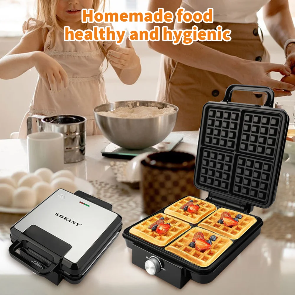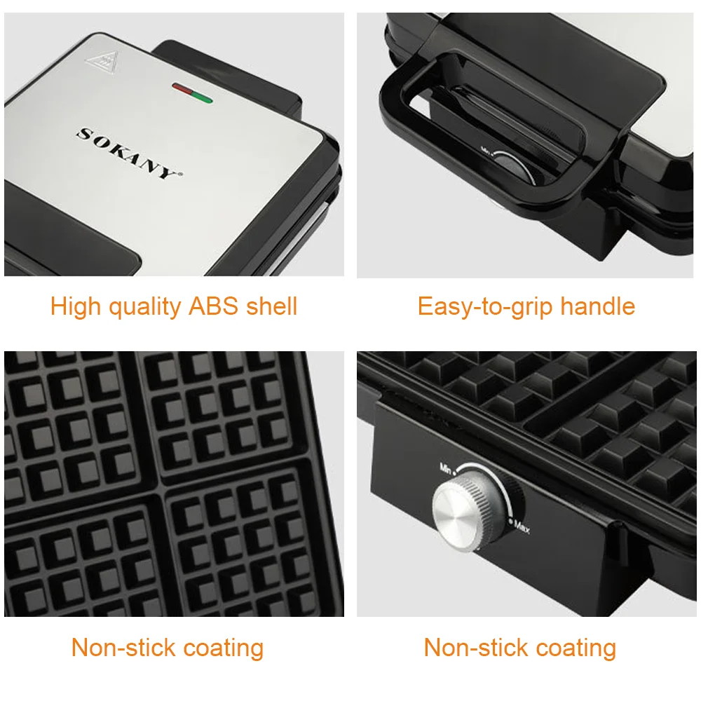 The waffle maker comprises a stainless steel body and ABS shell, ensuring long-time use and easy to clean. The Teflon coating is rust & corrosion-proof, bringing you a non-stick baking experience.