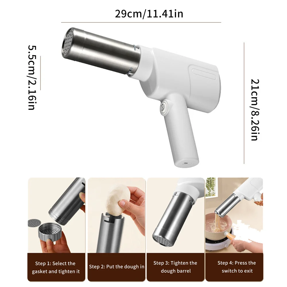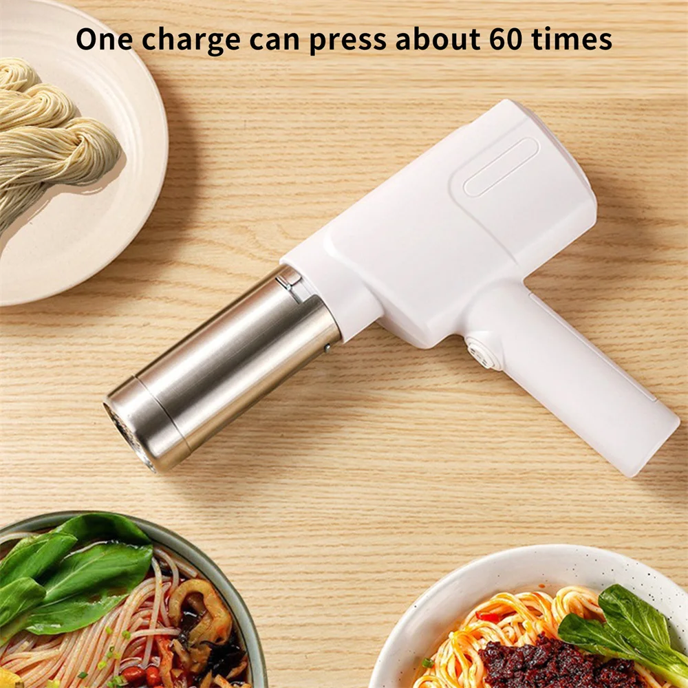 1500mAh Rechargeable: Built-in 1500 mAh large-capacity battery, charging time: 3 hours. After fully charged, the electric manual noodle maker can produce up to 60 batches of noodles. No need to worry about battery life.