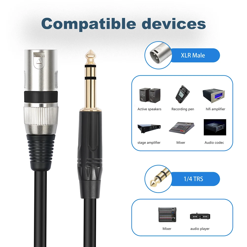 5. Versatile Use : The 6.35mm plug to 3 pin xlr male cable is designed for a wide range of applications. Its premium construction and materials ensure superior noise reduction and reliable performance, making it a valuable addition to any audio setup.