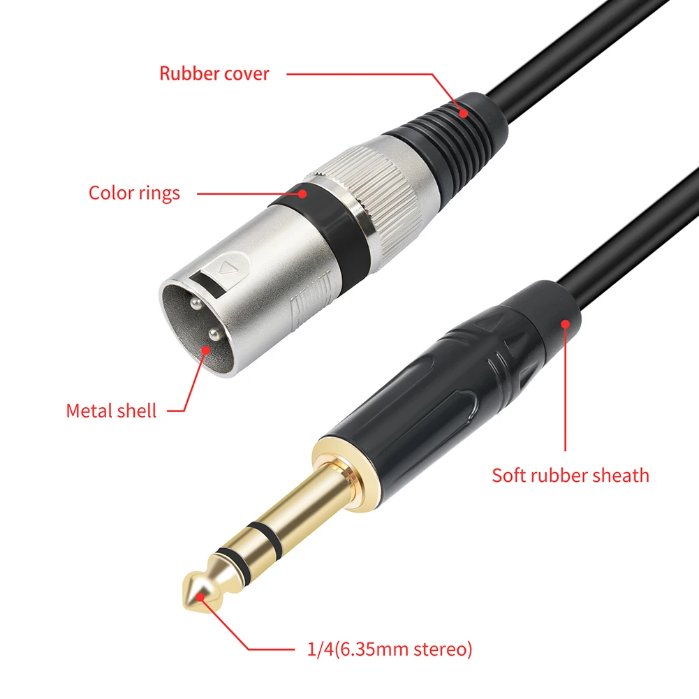 2. Durability and Flexibility: Constructed with a metal casing, the 6.35mm to xlr male cable is built to last. The soft PVC material and buffered protection at the plug tail safeguard the cable from breakage, ensuring long-term durability and flexibility.
