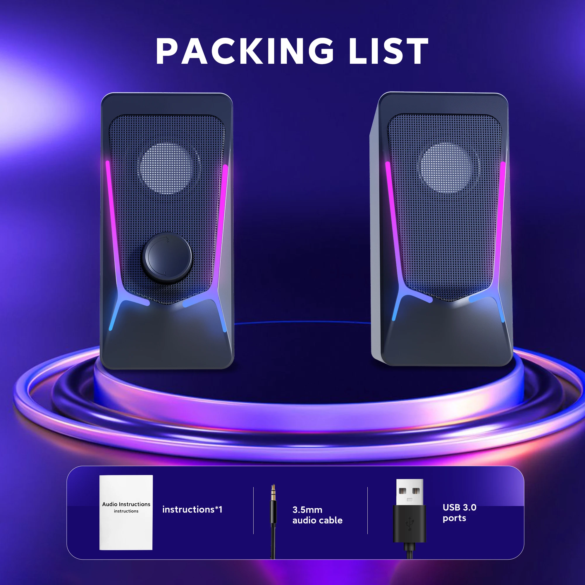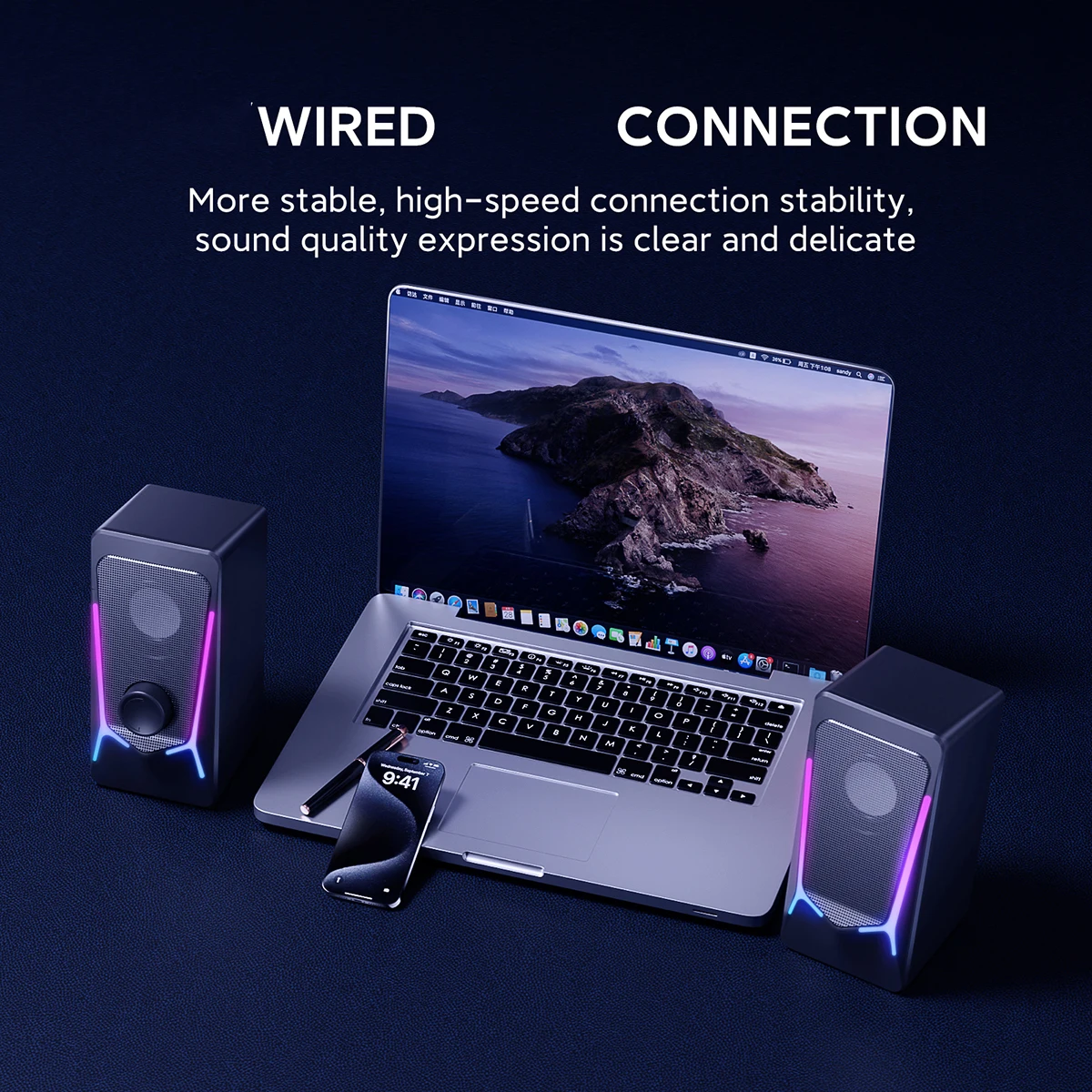 Powerful Bass USB Notebook Stereo Speakers RGB Light Wired Portable Full Frequency Desktop PC Laptop Subwoofer