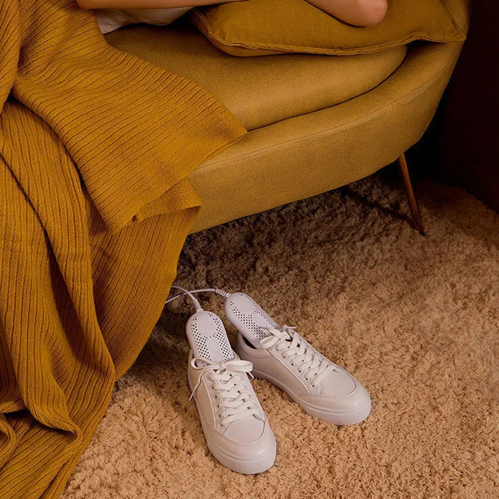 1. Care for Your Feet: Our shoe dryer provides a new and enhanced experience in shoe drying, ensuring the utmost care for your feet.  With its adjustable and constant temperature feature, this shoe dryer offers a gentle and comfortable drying process.  The PTC heating element continuously emits heat while the intelligent temperature control system maintains a consistent warmth.