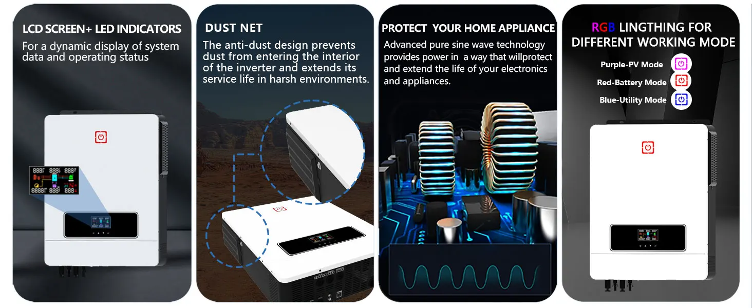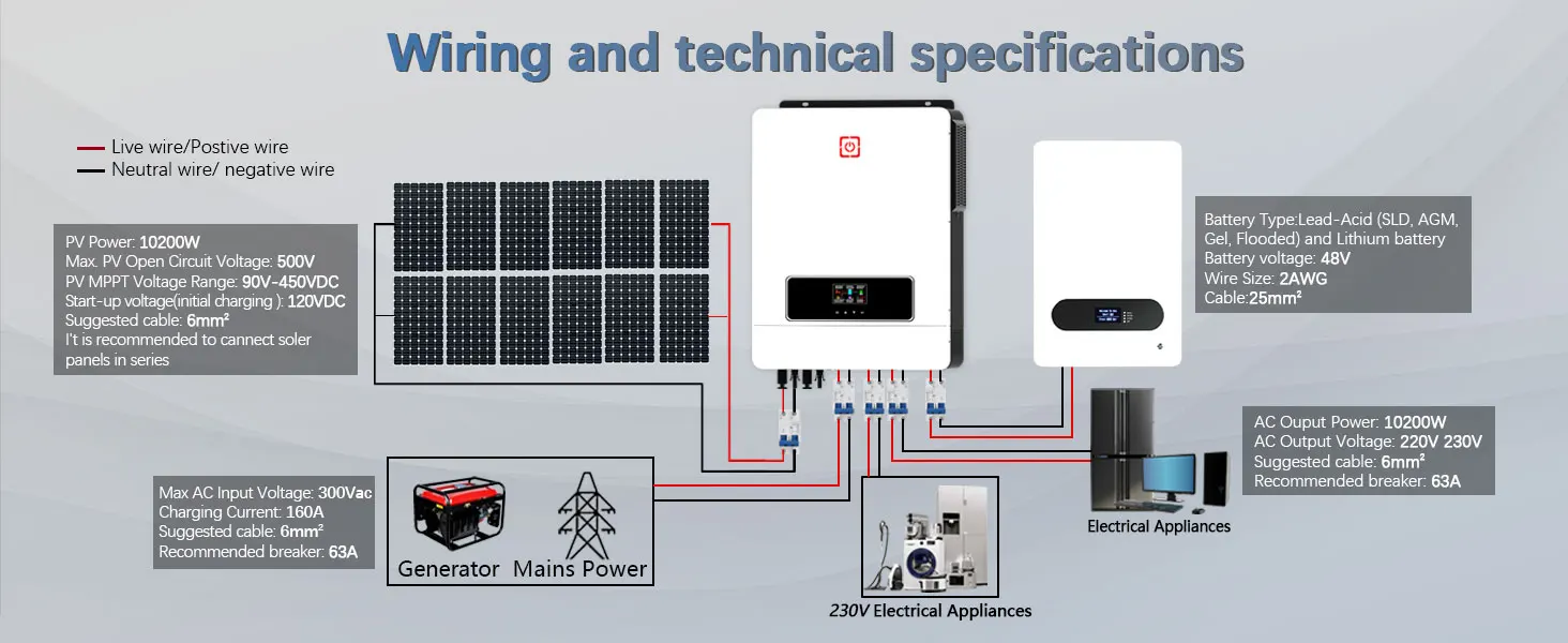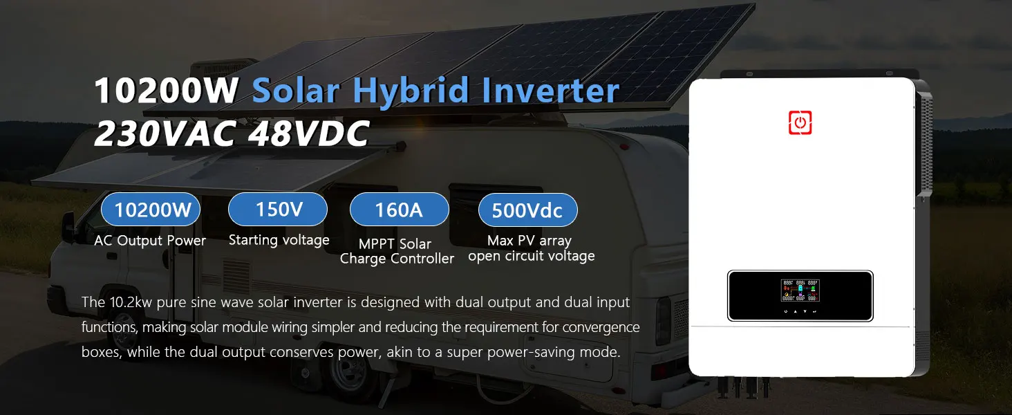MPPT Inverter Charger Pure sine Wave 10200W for RV Camping Boat Home Emergency ect.. Can be accessed to a variety of household and office loads, including Oven, rice cooker, lamps, televisions, fans and other AC loads.(Be careful not to install it near the bedroom, the fan will make a sound when the inverter is running. Avoid affecting your rest