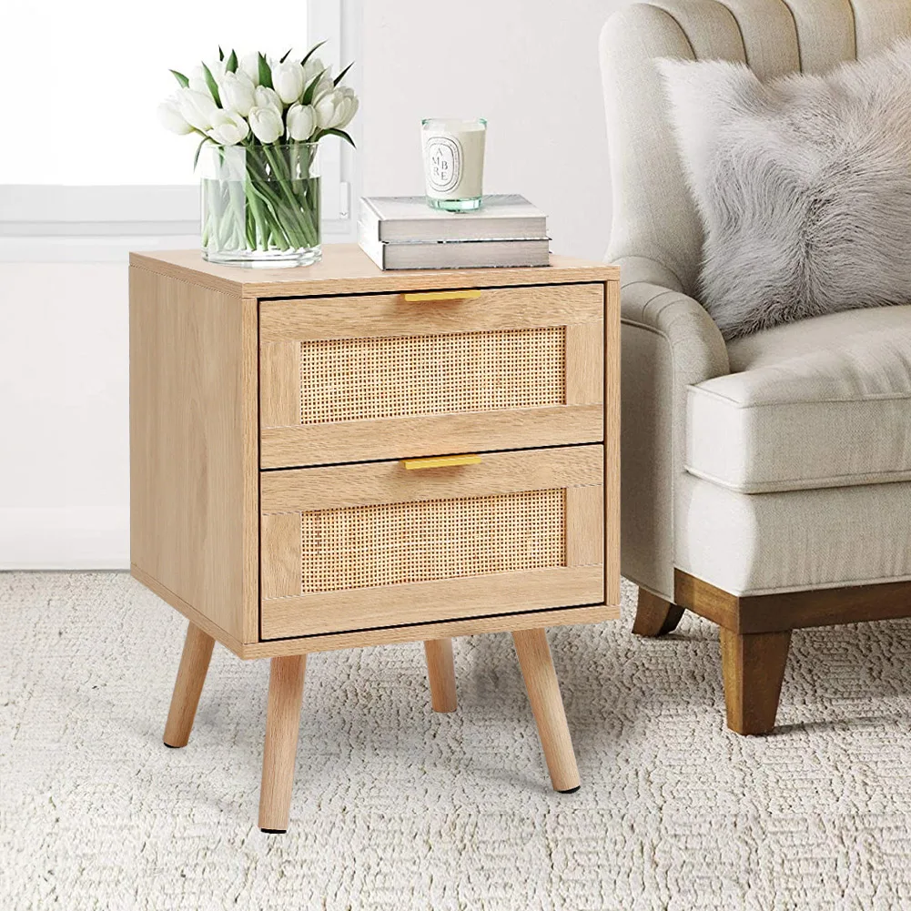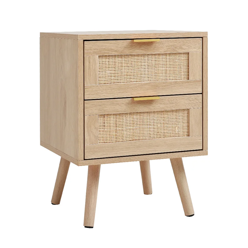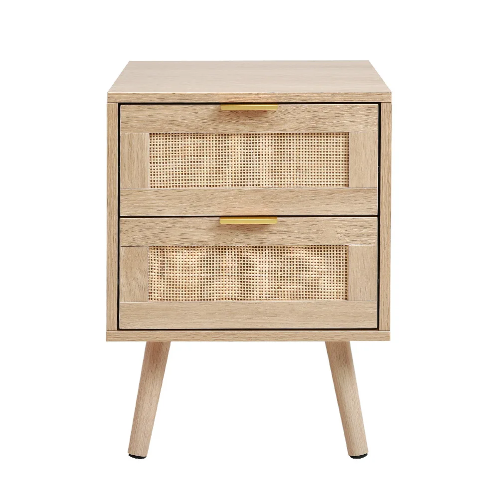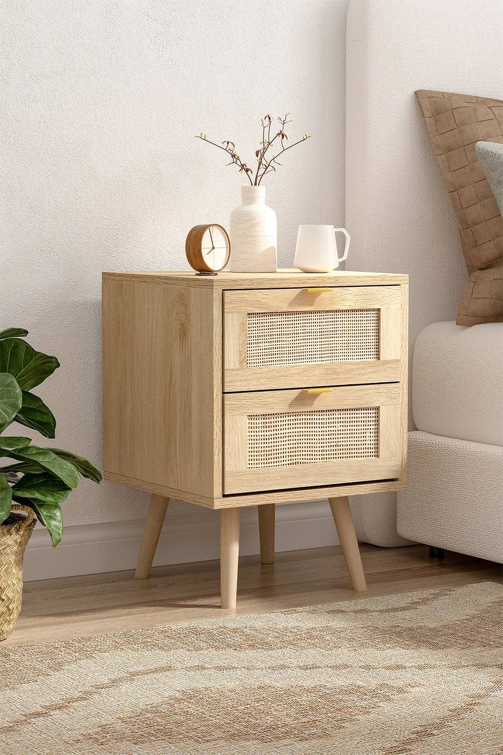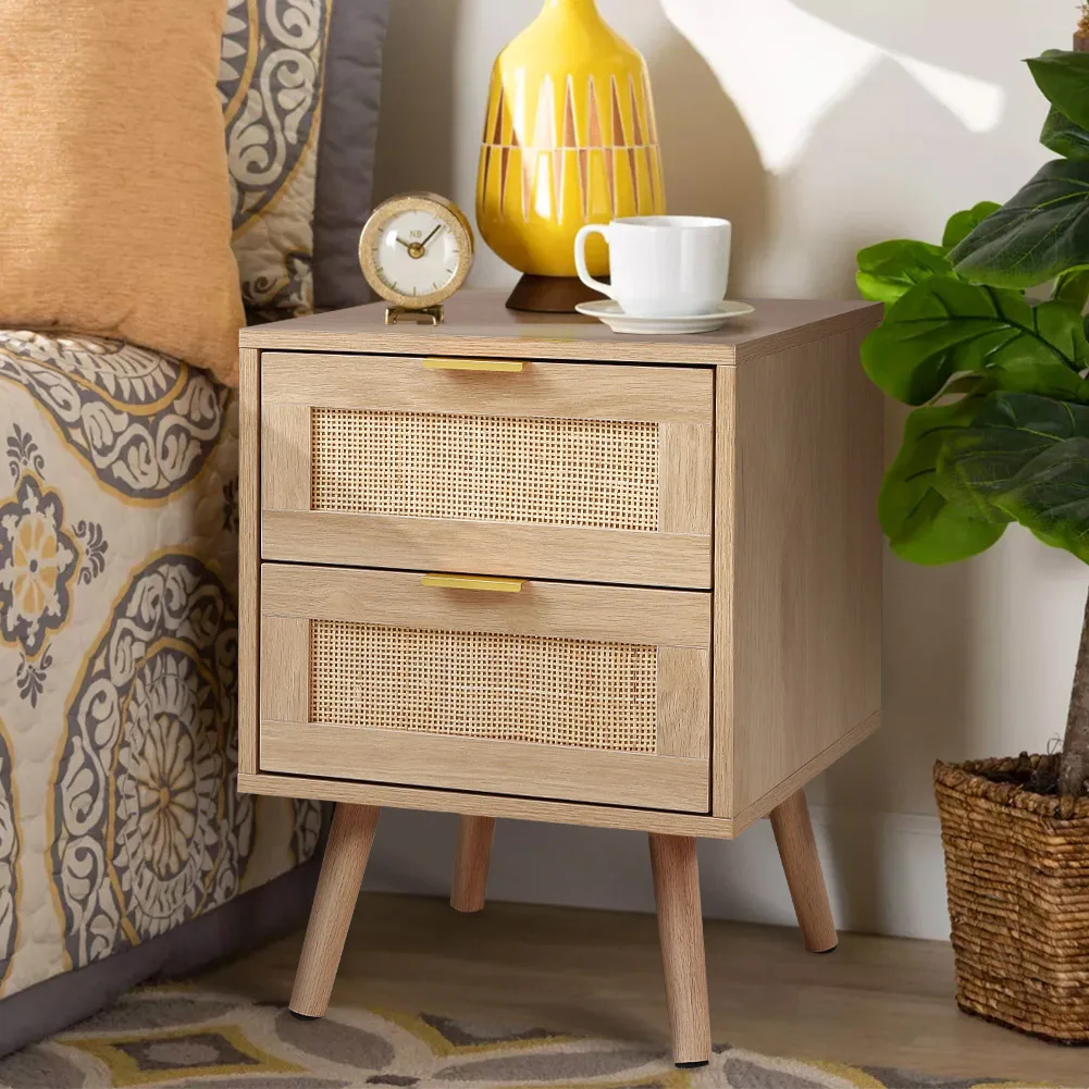 Style in simplicity is what makes this Lifeideas side cabinet special. Crafted from sturdy wood and intricately woven rattan, this side cabinet offers both style and functionality. It features two drawers that smoothly slide to reveal space for your essentials, while the smooth tabletop is perfect for holding your lamp, books, or other bedside necessities. It is also finished off with four tapered pine wood legs and lengthened handles to open and close the drawer easily.