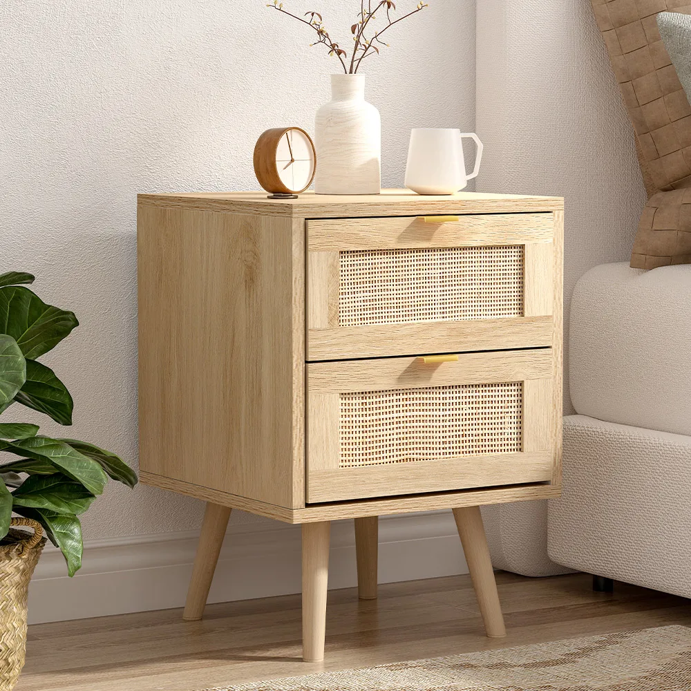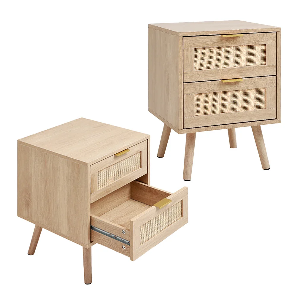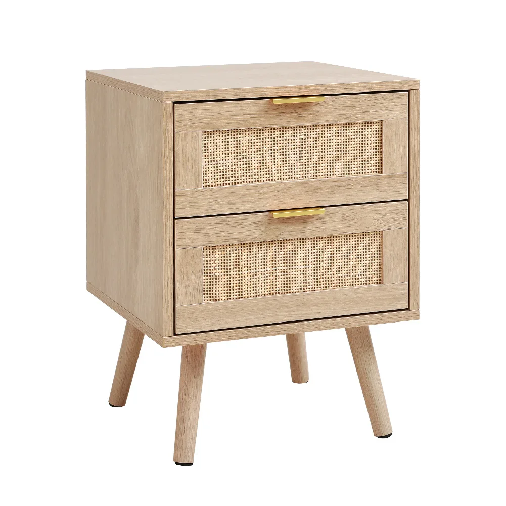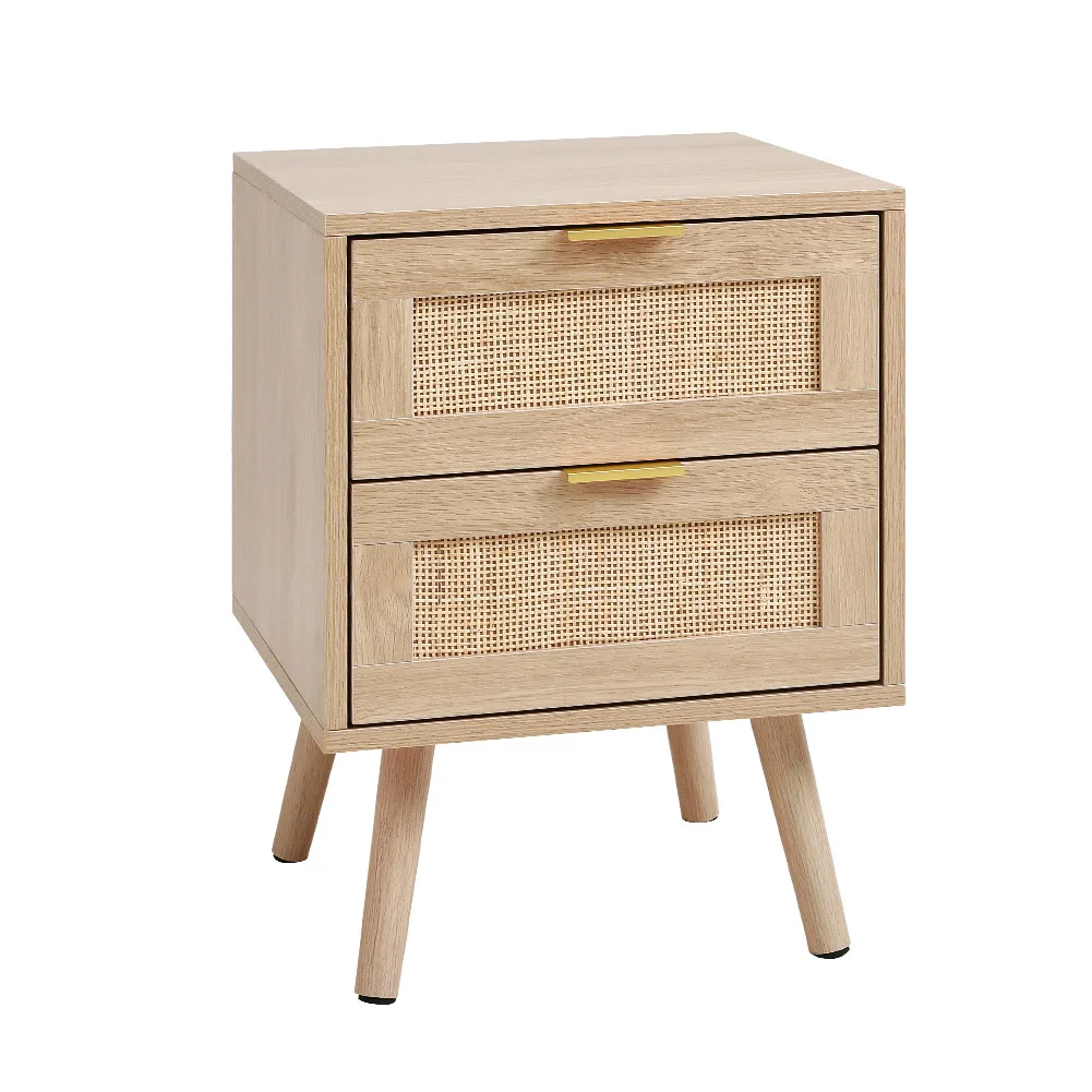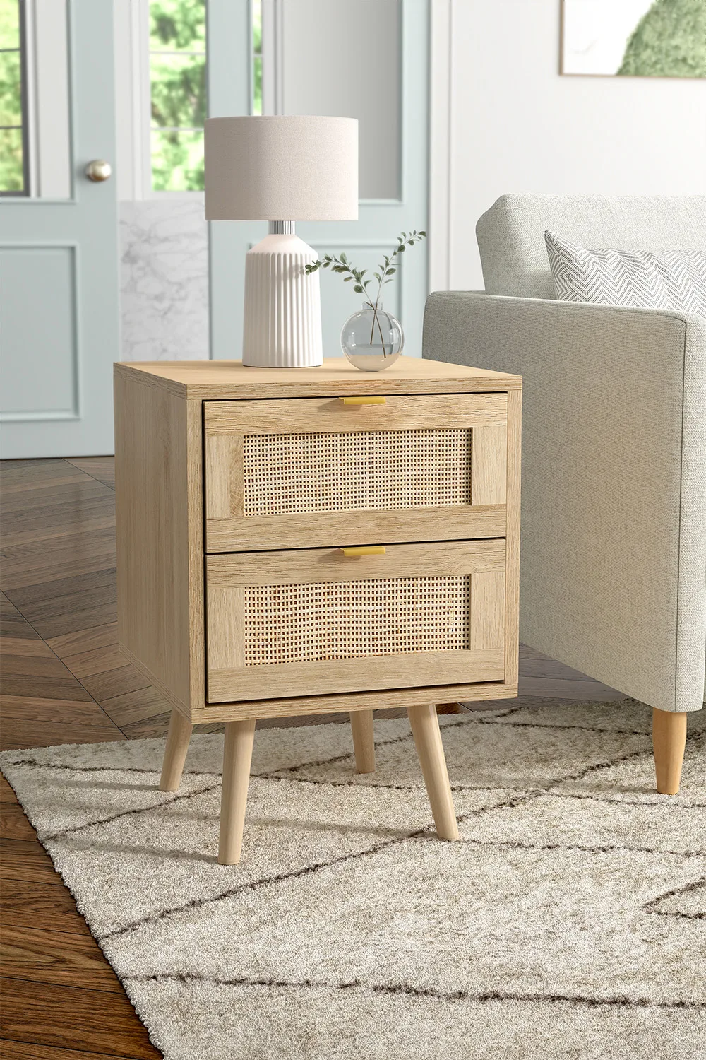Style in simplicity is what makes this Lifeideas side cabinet special. Crafted from sturdy wood and intricately woven rattan, this side cabinet offers both style and functionality. It features two drawers that smoothly slide to reveal space for your essentials, while the smooth tabletop is perfect for holding your lamp, books, or other bedside necessities. It is also finished off with four tapered pine wood legs and lengthened handles to open and close the drawer easily.