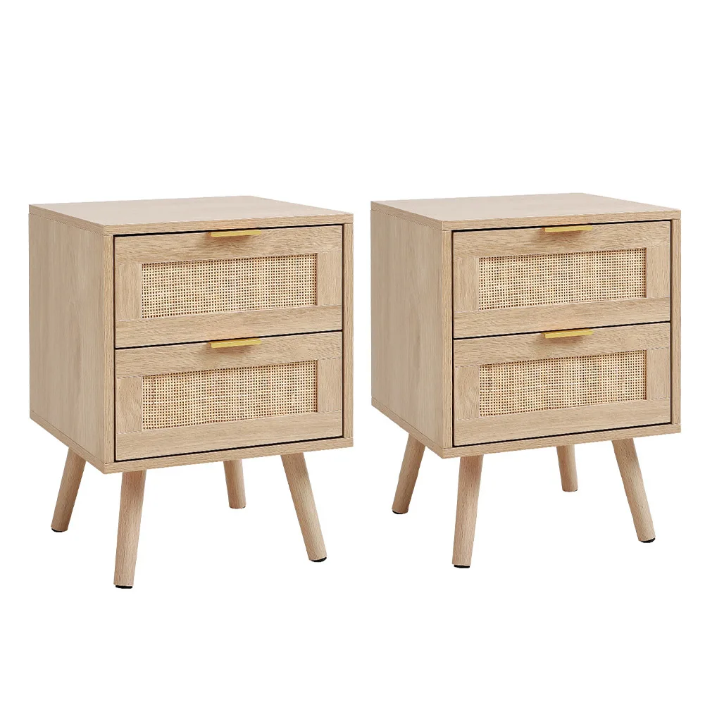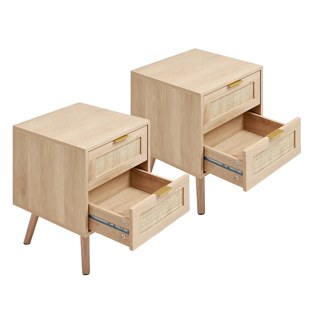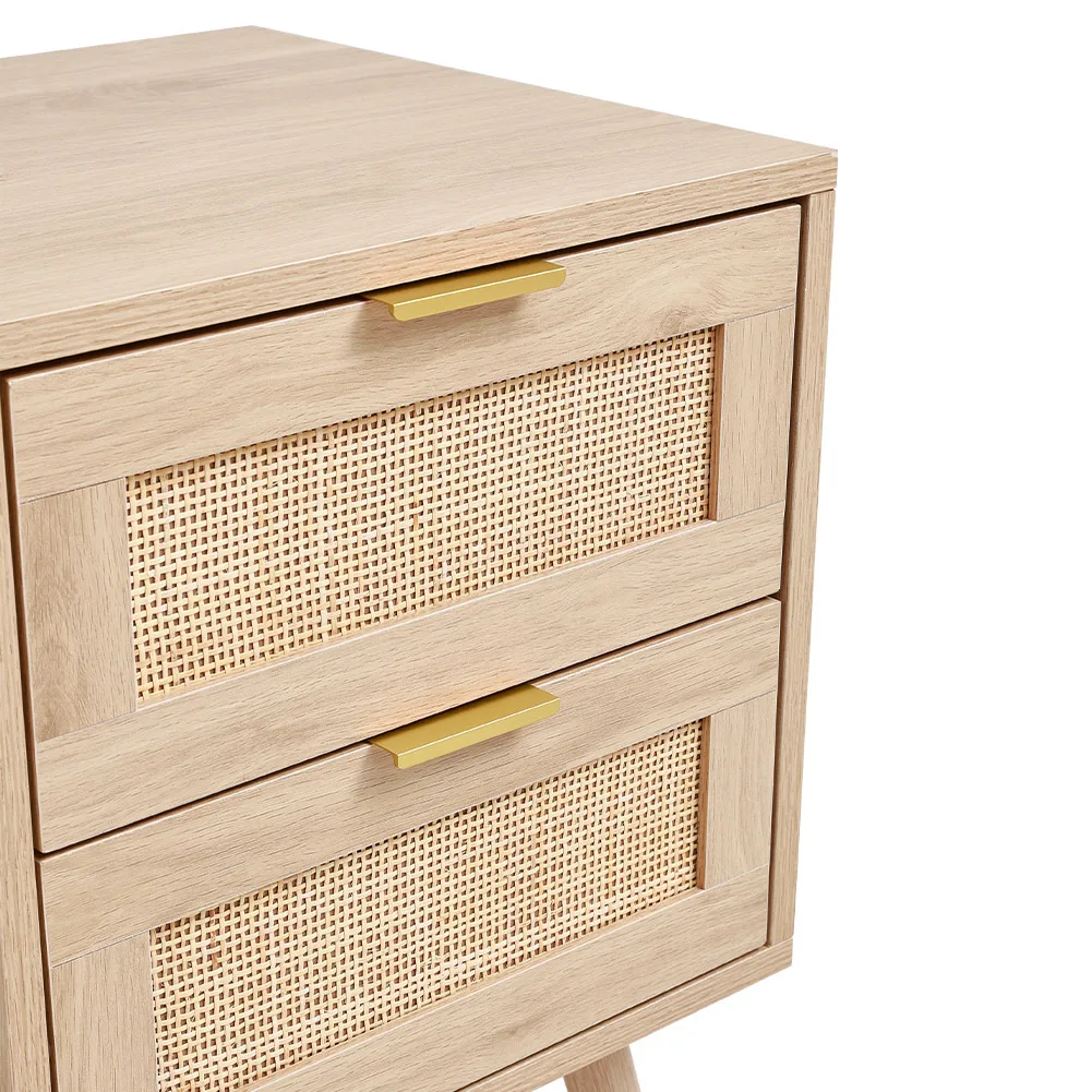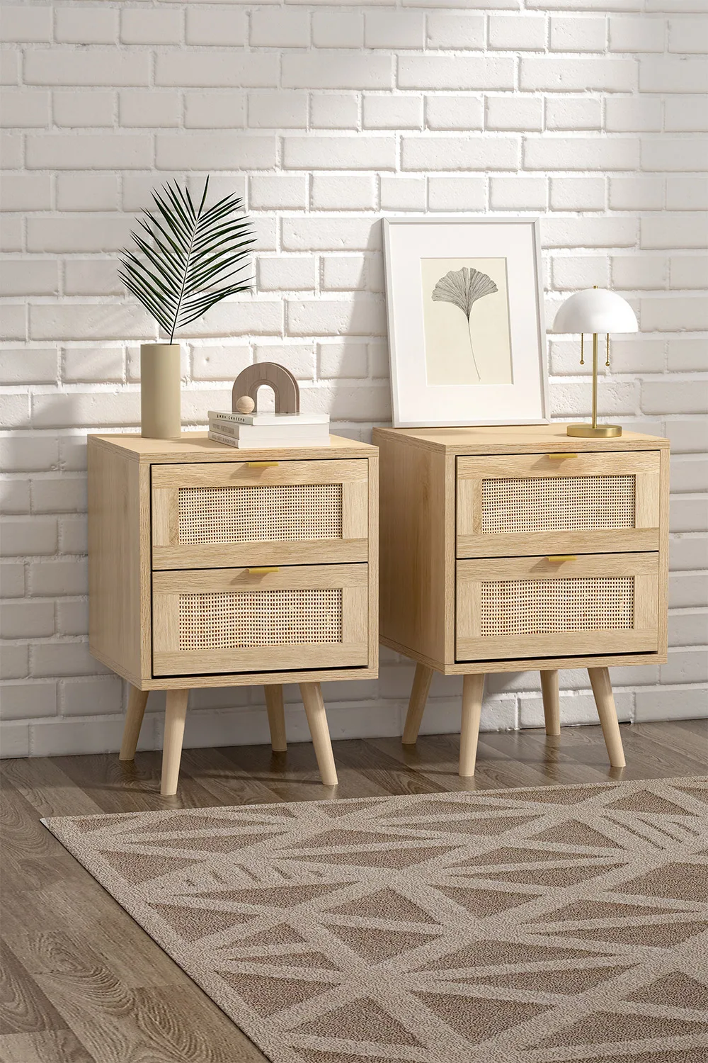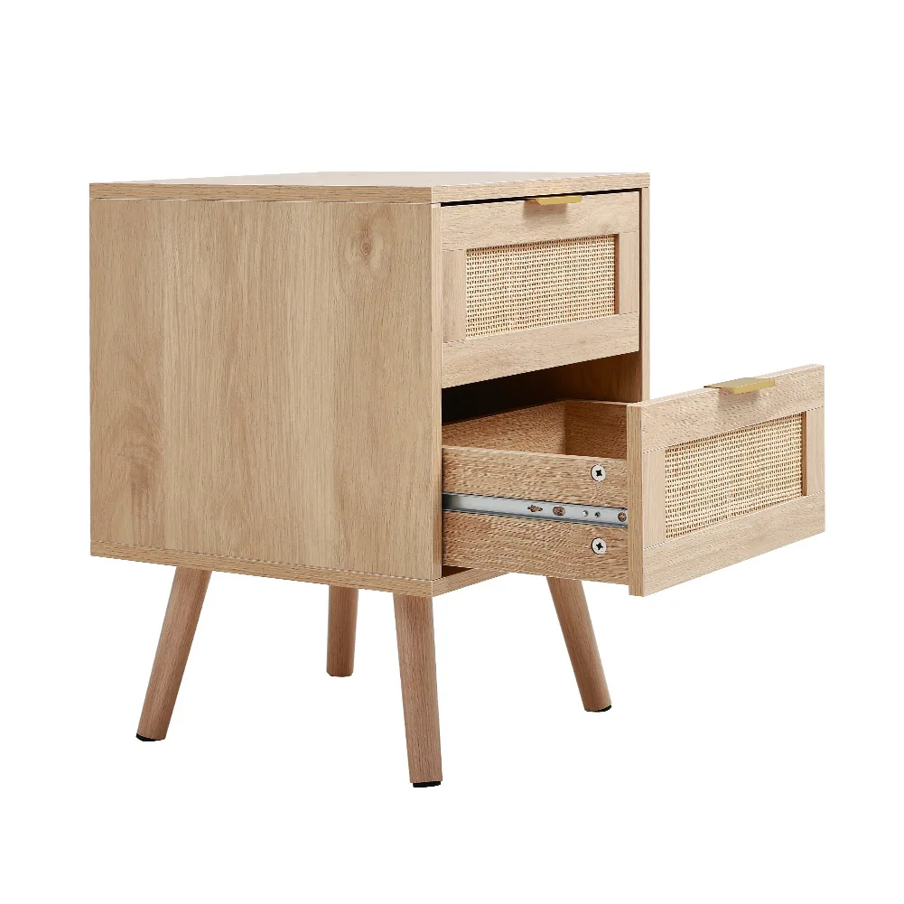 Style in simplicity is what makes this Lifeideas side cabinet special. Crafted from sturdy wood and intricately woven rattan, this side cabinet offers both style and functionality. It features two drawers that smoothly slide to reveal space for your essentials, while the smooth tabletop is perfect for holding your lamp, books, or other bedside necessities. It is also finished off with four tapered pine wood legs and lengthened handles to open and close the drawer easily.